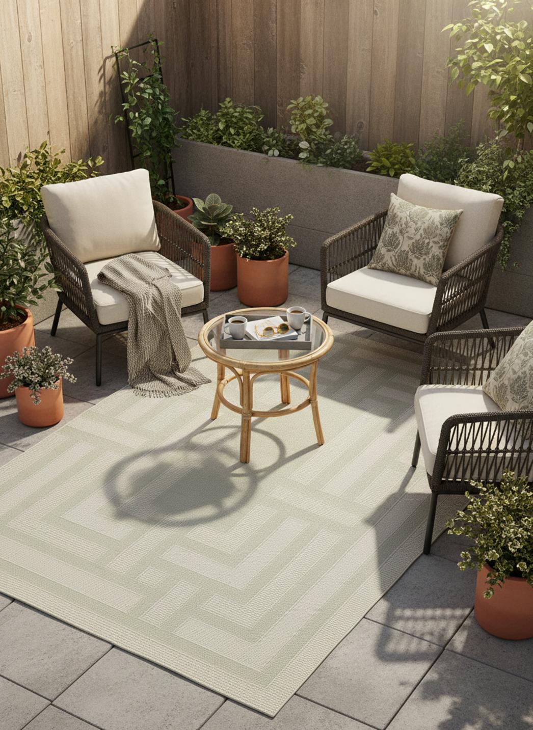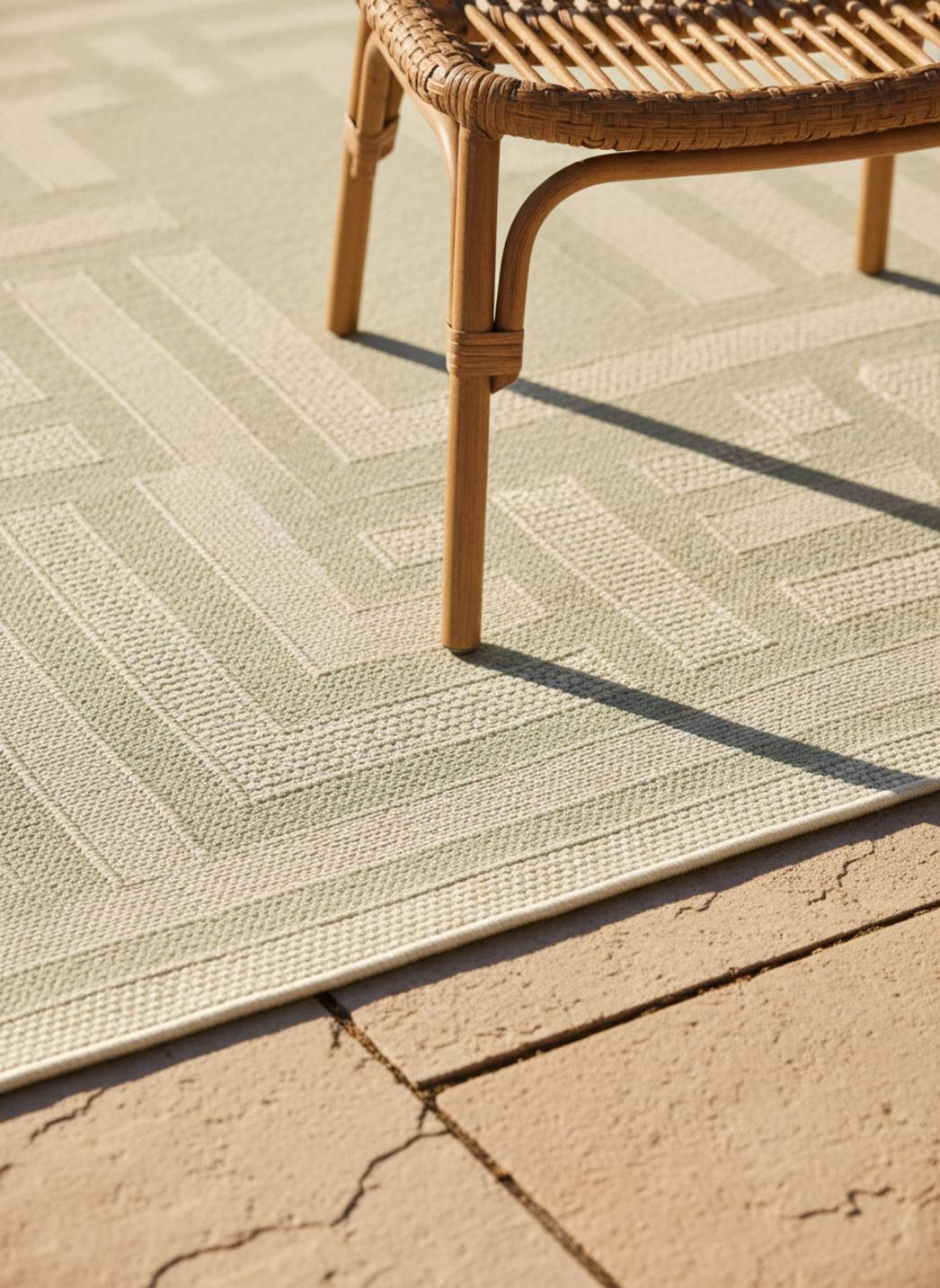 Sous la lumière naturelle, le tapis géométrique labyrinthe vert et gris révèle un jeu de lignes captivant, à la fois structuré et fluide. Son dessin enchevêtré évoque la modernité du design contemporain tout en conservant une grande douceur visuelle. Le vert, frais et végétal, dialogue avec la neutralité du gris pour créer une atmosphère équilibrée et apaisante. En format 80x150 cm, il se prête parfaitement aux petits espaces, reliant intérieur et extérieur dans une continuité élégante. Ce modèle traduit la finesse graphique de la collection de tapis d’extérieur, où la géométrie devient un motif vivant au contact de la lumière. Sa texture tissée à plat dévoile de subtiles nuances selon l’orientation et l’éclairage du jour. On retrouve cette même harmonie naturelle dans la sélection de tapis de balcon, idéale pour créer des décors lumineux et raffinés. Un tapis qui allie modernité et nature dans une élégance fluide et équilibrée.