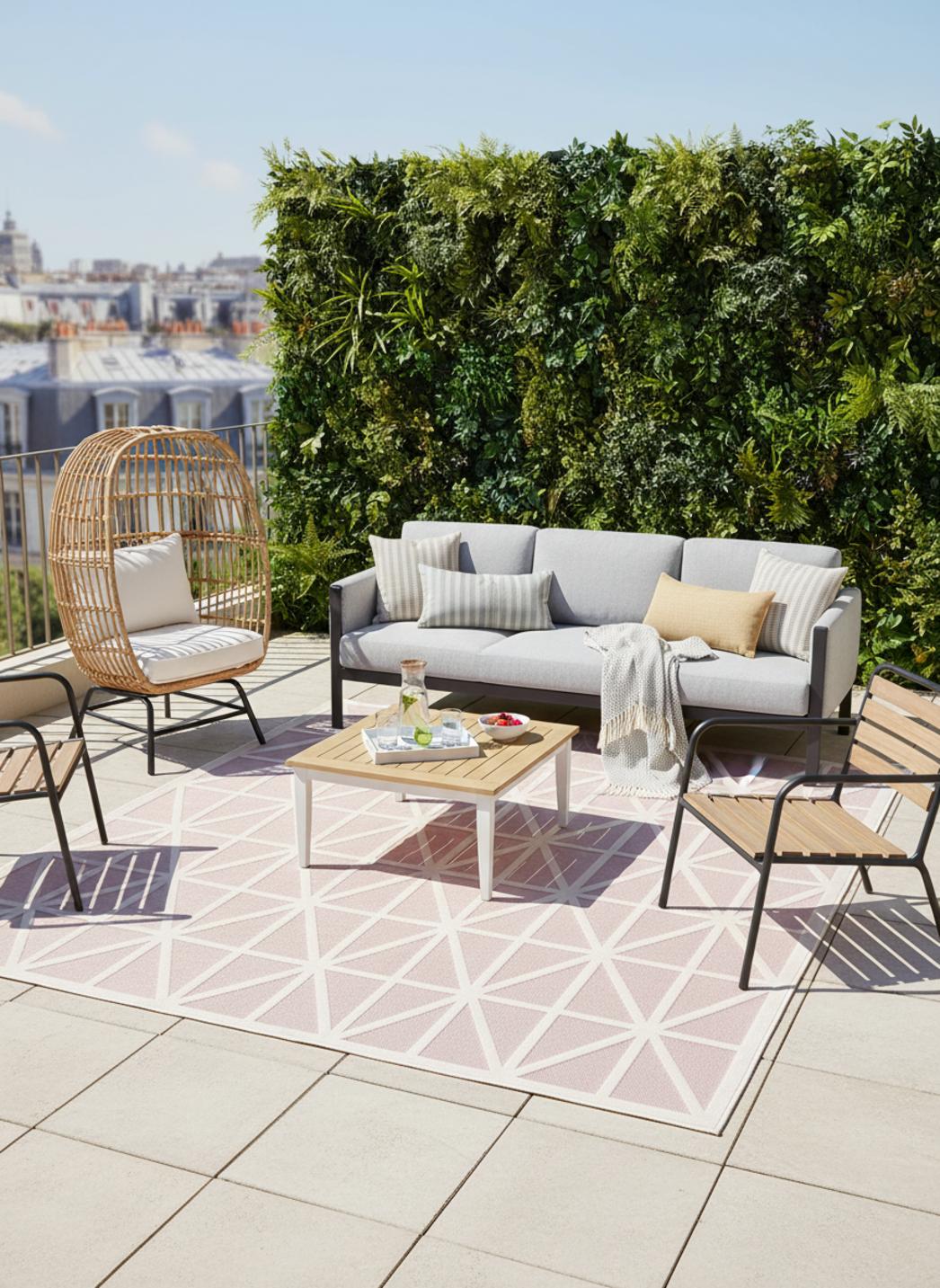 Pensé pour s'adapter aux usages, ce tapis bascule naturellement entre zones de vie et extérieurs protégés, soulignant sa vocation intérieur et extérieur. Sa présence ordonne l'espace sans le contraindre, offrant une assise graphique qui structure canapé, console ou terrasse couverte avec élégance.