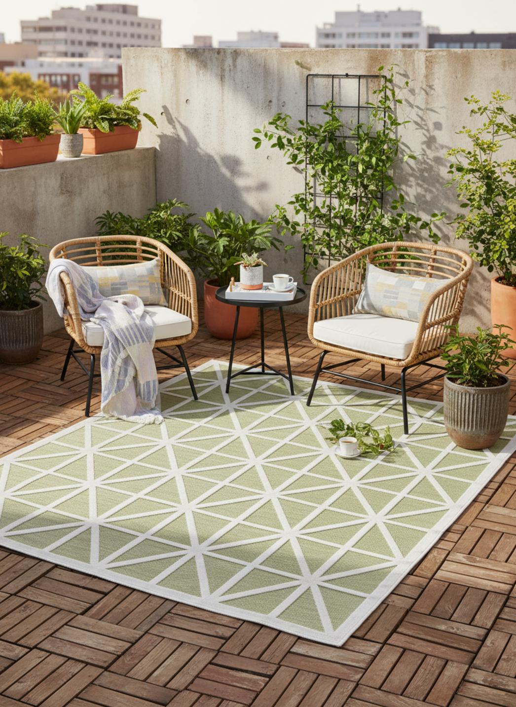 Tapis géométrique losange vert d'intérieur et d'extérieur 80x150 cm