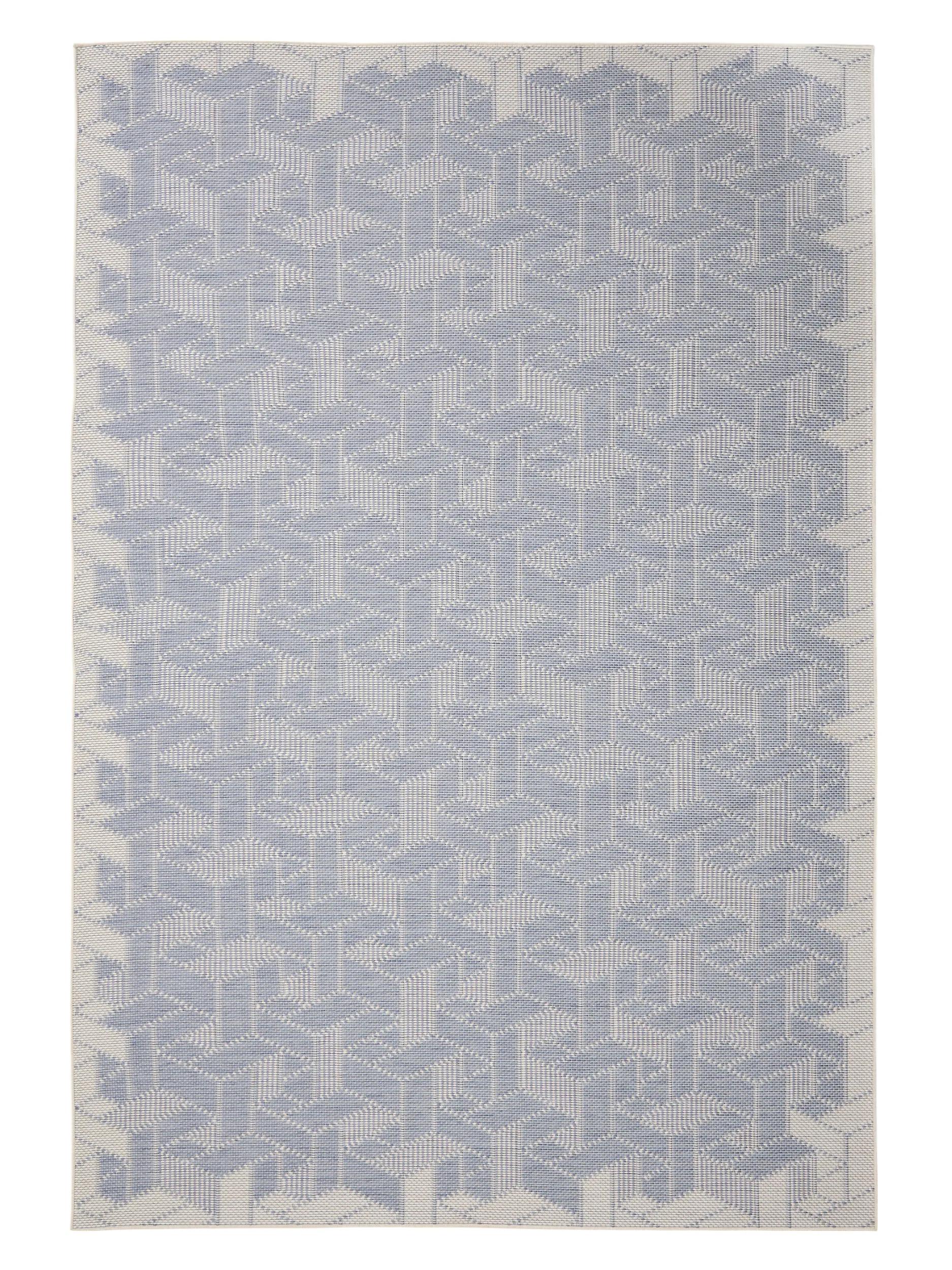 Tapis géométrique motif 3d bleu et gris d'intérieur et d'extérieur 200x290 cm
