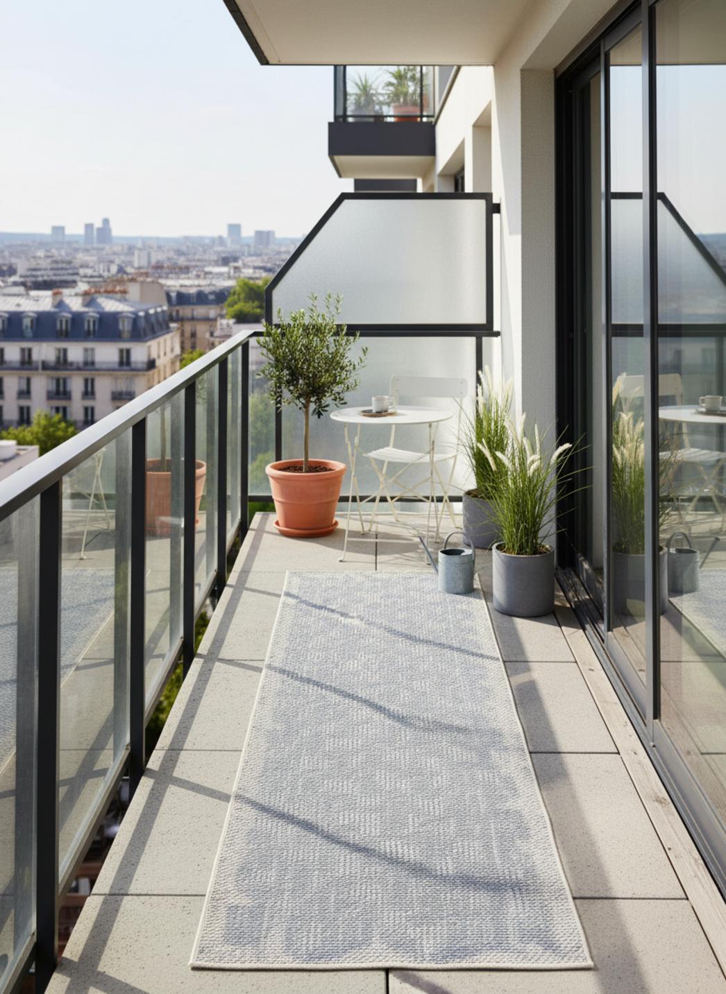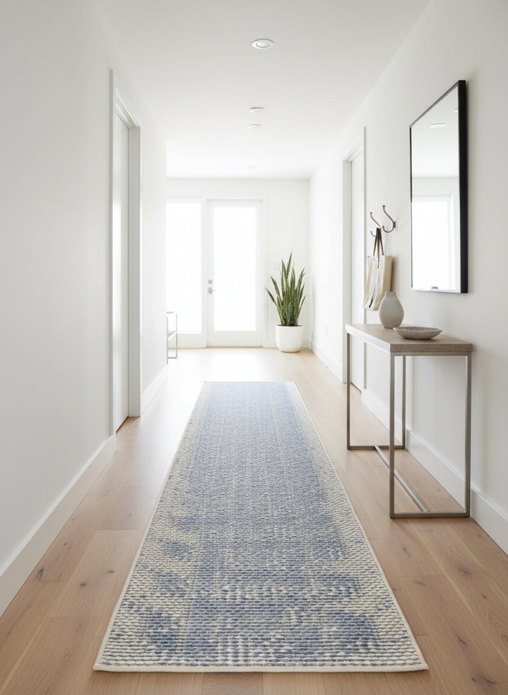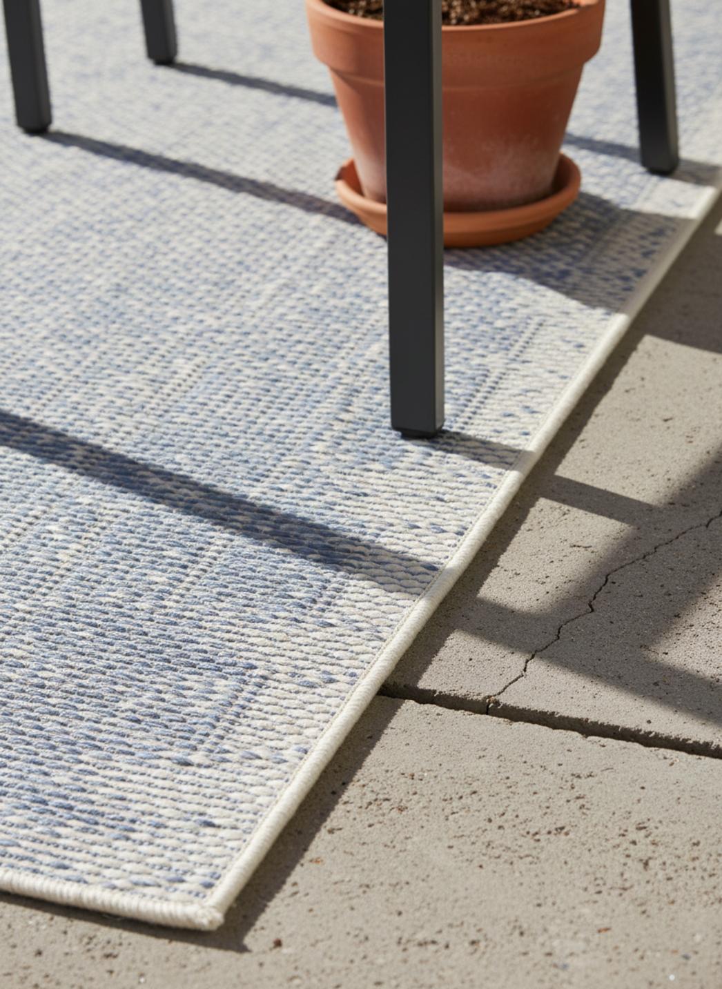 Ce tapis géométrique de couloir joue avec la perspective grâce à son motif 3D bleu et gris, qui semble donner vie au sol par un subtil effet de volume. Son format de 80x250 cm allonge visuellement l’espace et crée une impression de profondeur idéale pour les passages extérieurs, les terrasses ou les allées abritées. Les teintes de bleu et de gris s’entrelacent dans une composition contemporaine, à la fois fraîche et équilibrée. La lumière met en relief les formes tridimensionnelles, révélant un jeu d’ombres et de contrastes d’une grande finesse. Chaque pas devient une expérience visuelle, entre rigueur géométrique et illusion de mouvement. Ce tapis de couloir d’intérieur et d’extérieur incarne la modernité dans sa forme la plus élégante : un décor vivant, graphique et harmonieux, qui structure le passage tout en apportant une note de design audacieuse et raffinée.