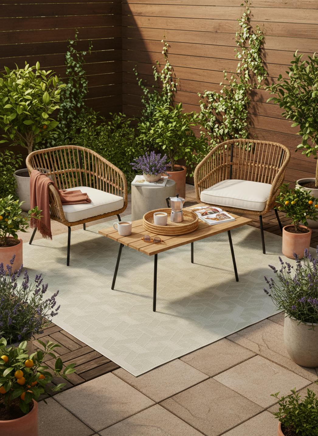 Dans une entrée moderne ou sur un balcon lumineux, le tapis géométrique à motif 3D gris et vert attire le regard par son effet de profondeur et son équilibre visuel. Ses formes tridimensionnelles jouent avec la lumière pour créer un relief subtil, à la fois graphique et apaisant. Le gris, neutre et élégant, sert d’écrin à des touches de vert qui insufflent fraîcheur et vitalité à l’ensemble. En format 80x150 cm, il s’adapte parfaitement aux petits espaces, reliant intérieur et extérieur dans une continuité harmonieuse. Ce modèle incarne la modernité raffinée de la collection de tapis d’extérieur, où la géométrie devient un art décoratif à part entière. Sa texture tissée à plat révèle un jeu de volumes et de contrastes qui évoluent selon l’éclairage. On retrouve cette même alliance de clarté et d’énergie dans la sélection de tapis d’extérieur verts, idéale pour créer des ambiances contemporaines et vivantes. Un tapis qui associe relief et légèreté dans une élégance équilibrée.