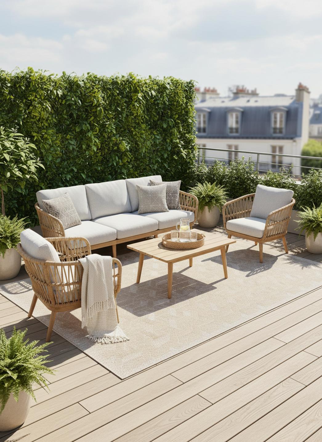 La matière répond à l’usage quotidien avec une douceur notable sous les pas et un relief discret qui se lit au toucher. Pensé pour s’adapter à des environnements variés, il s’intègre aussi bien en intérieur qu’en extérieur, apportant une empreinte texturée qui résiste aux allées et venues. L’entretien se montre simple, évoqué comme une qualité de vie plutôt que comme un argument.