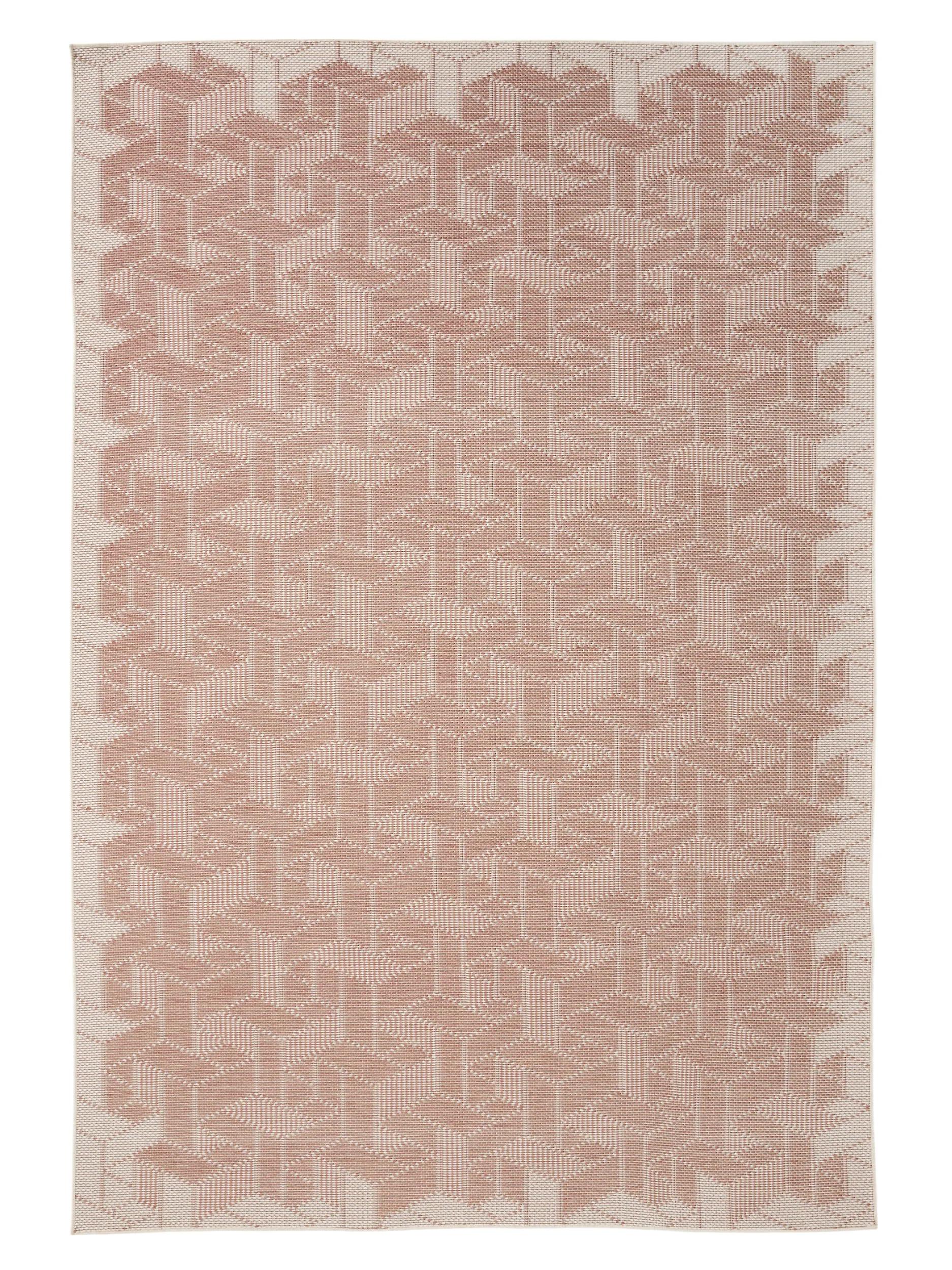 Tapis géométrique motif 3d terracotta d'intérieur et d'extérieur 160x230 cm