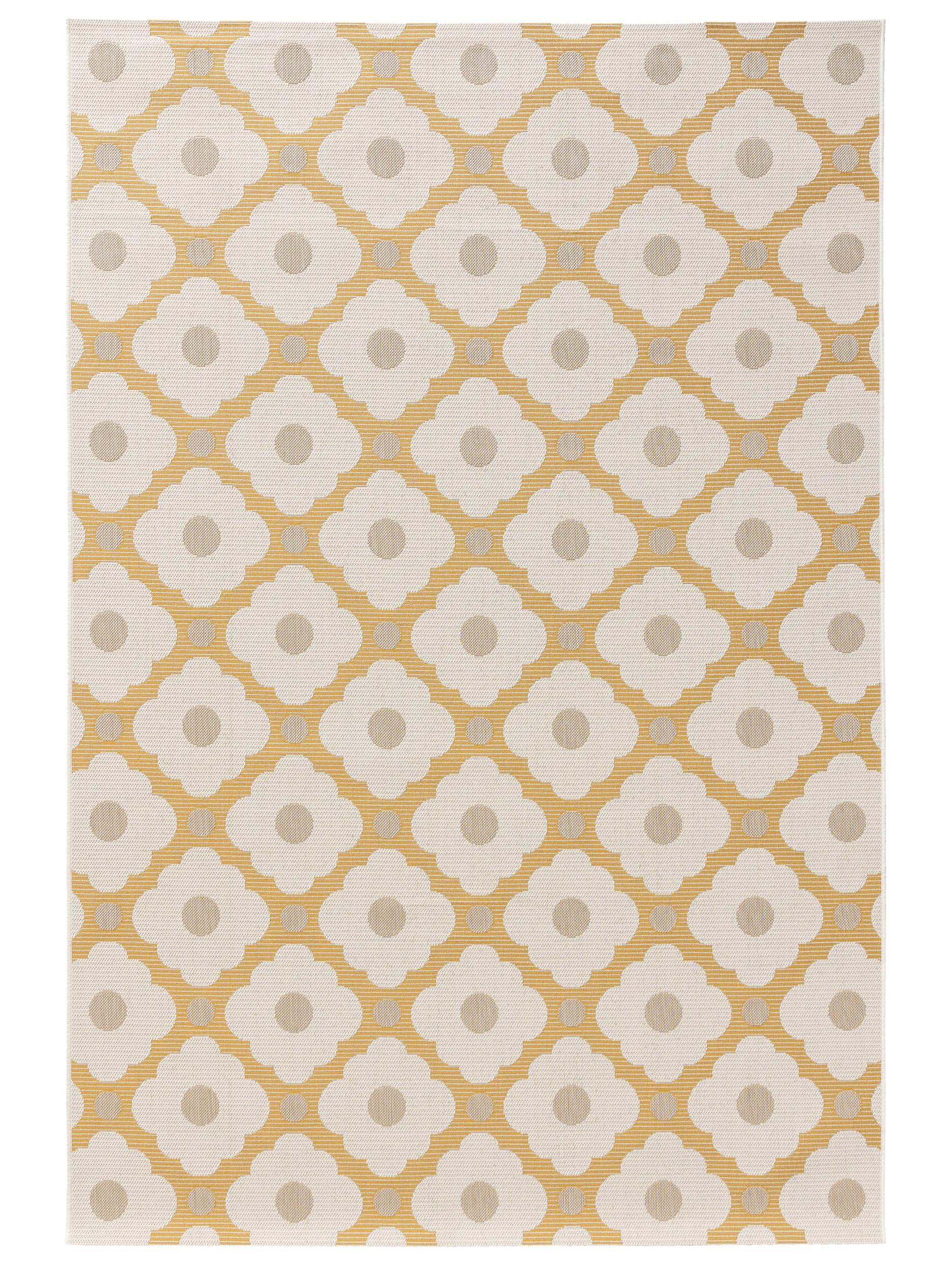 Tapis géométrique motif à fleurs beige et jaune d'intérieur et d'extérieur 200x290 cm