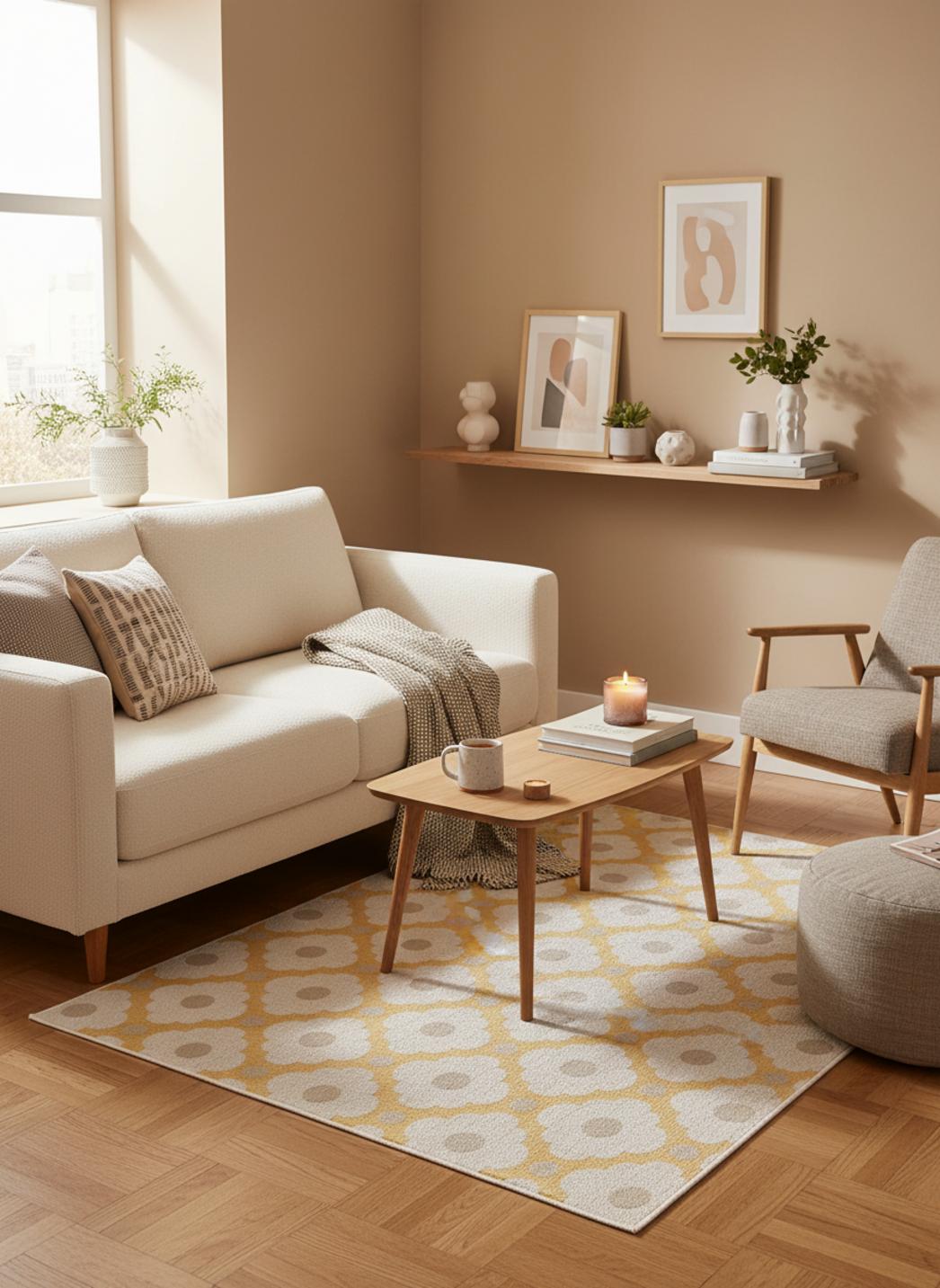Tapis géométrique motif à fleurs beige et jaune d'intérieur et d'extérieur 80x150 cm
