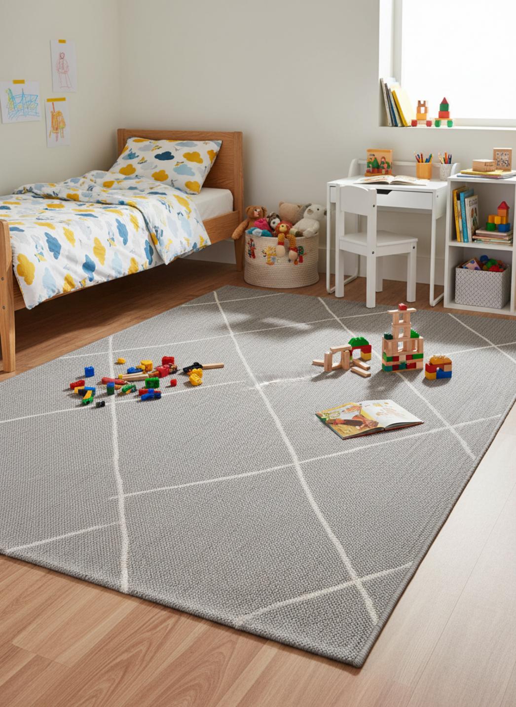 Tapis géométrique motif berbère enfant gris d'intérieur et d'extérieur 80x150 cm