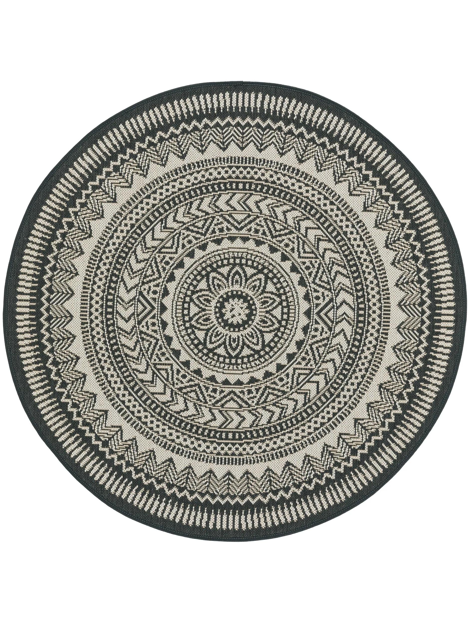 Tapis géométrique motif berbère rond noir et blanc d'intérieur et d'extérieur 120 cm de diamètre