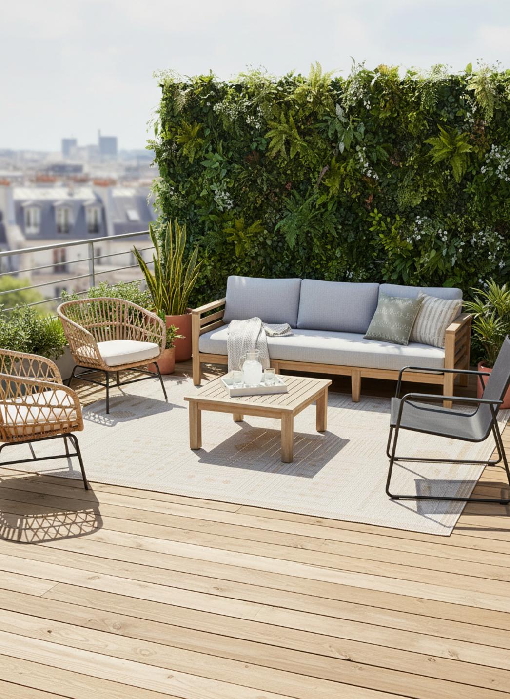 Idéal pour qui cherche une atmosphère cosy et légèrement nomade, il apporte une chaleur naturelle sans lourdeur. L'entretien reste simple : une aspiration douce pour préserver les fibres, et des matières pensées pour garder leur tenue au fil du temps, même lorsqu'elles respirent l'air libre d'une terrasse abritée.