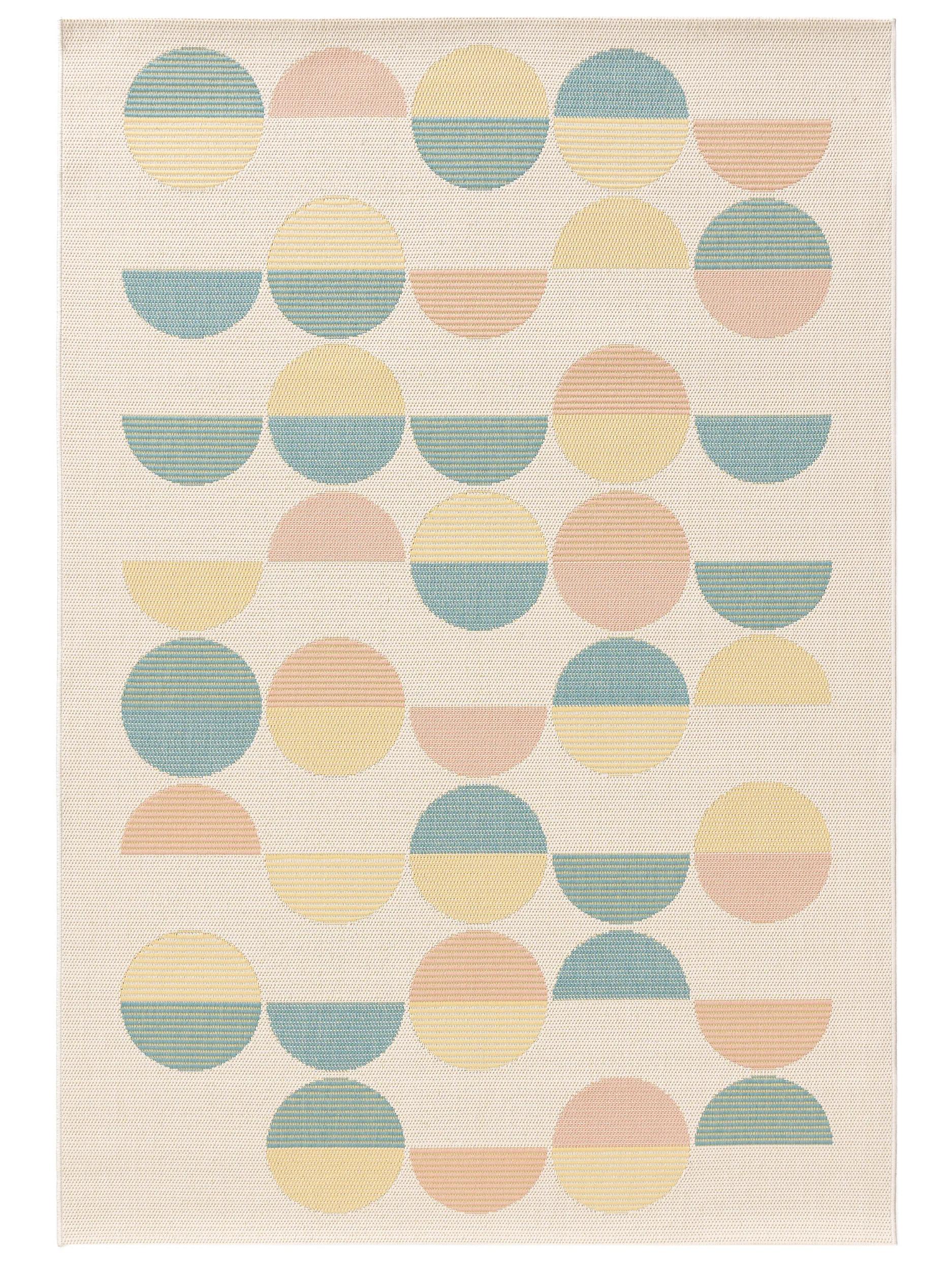 Tapis géométrique motif cercle vert d'eau et beige d'intérieur et d'extérieur 200x290 cm