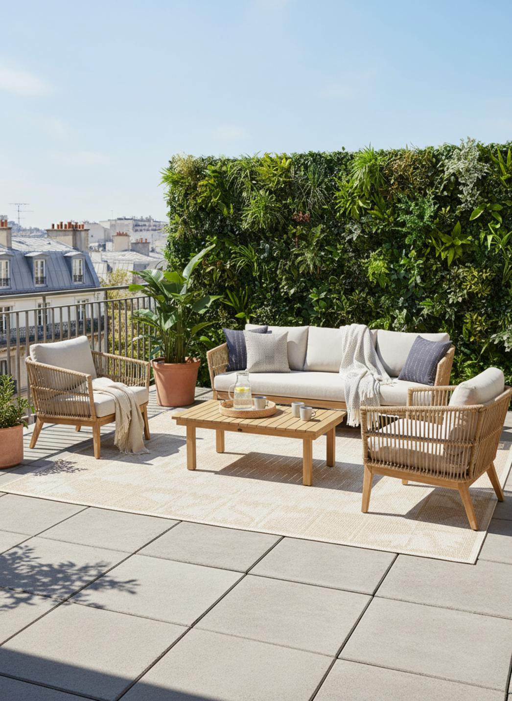 Dans un agencement contemporain, ce modèle se prête autant à un espace intérieur qu’à un espace extérieur, où il apporte une note chaleureuse sans trahir son élégance. Pensé pour dialoguer avec un salon, une chambre ou une entrée, il s’intègre naturellement à une ambiance bohème moderne, transformant un simple sol en point focal apaisant. Ses proportions apportent un rythme apaisant à la pièce.