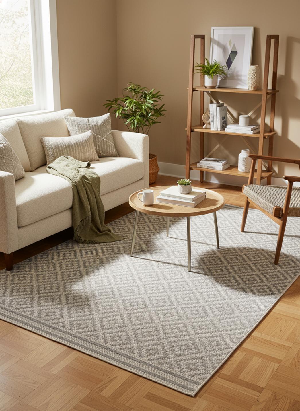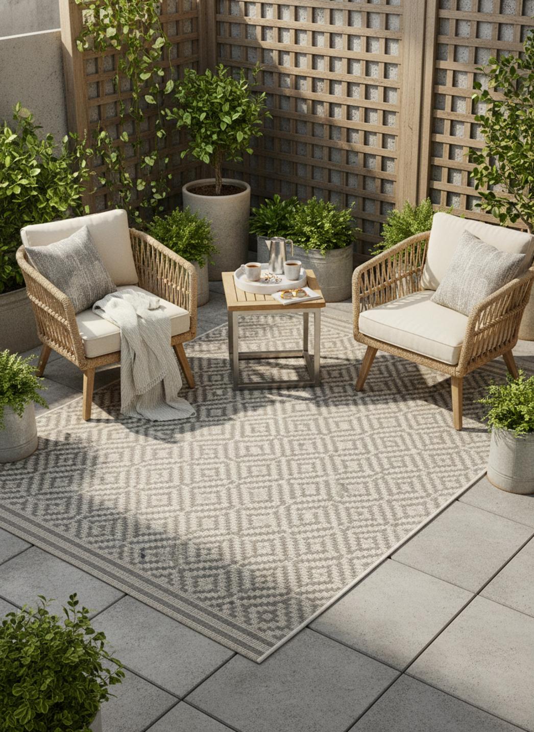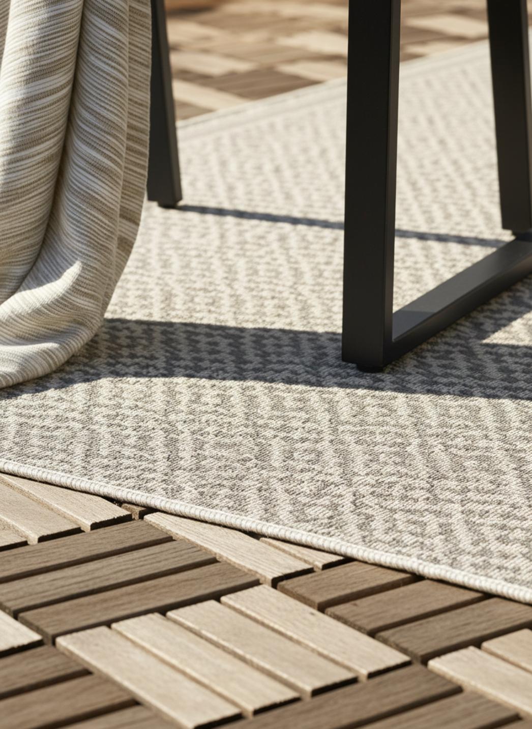 Le tapis géométrique à motif ethnique beige et gris mêle sobriété et raffinement dans un équilibre parfait. Ses formes géométriques inspirées de l’artisanat traditionnel créent un rythme doux et régulier, tandis que la palette neutre associe la chaleur du beige à la stabilité du gris. Ensemble, ces tons diffusent une lumière naturelle qui apaise et met en valeur la décoration environnante. En format 80x150 cm, il s’adapte aisément aux petits espaces, reliant intérieur et extérieur dans une continuité élégante. Ce modèle traduit l’harmonie contemporaine de la collection de tapis d’extérieur, où le motif devient un élément de texture et de caractère. Sa surface tissée à plat révèle des nuances subtiles selon la lumière du jour, offrant une présence à la fois discrète et raffinée. On retrouve cette même douceur naturelle dans la gamme de tapis de balcon, parfaite pour créer des coins de détente empreints de calme et de style. Un tapis qui allie modernité et authenticité dans une élégance apaisée.