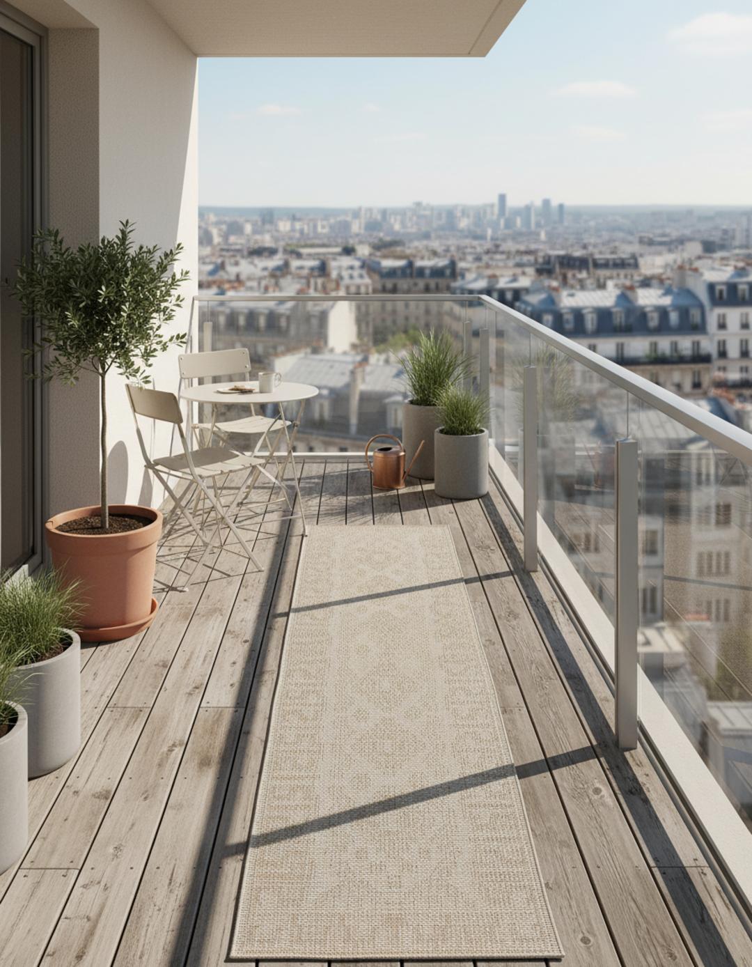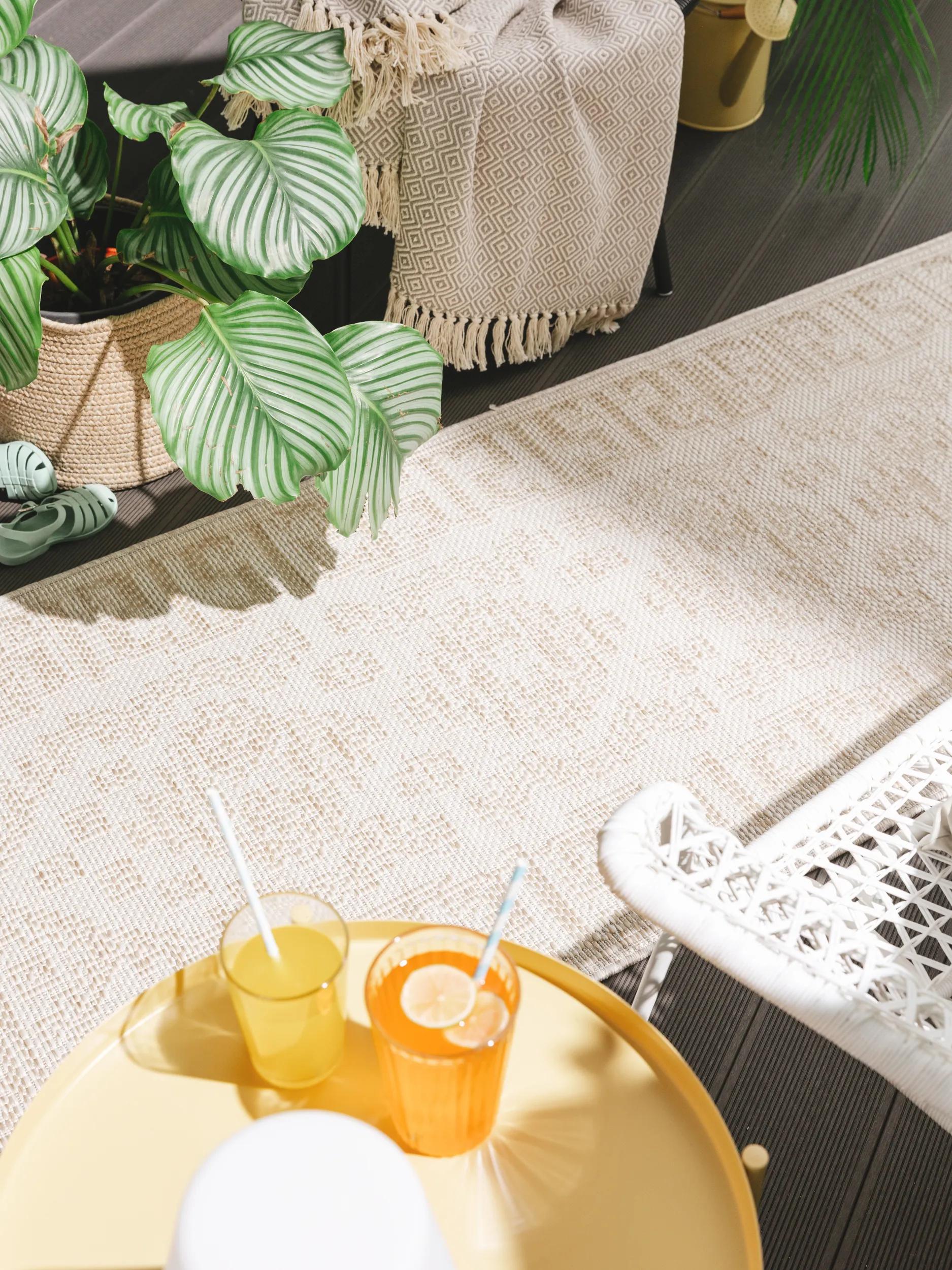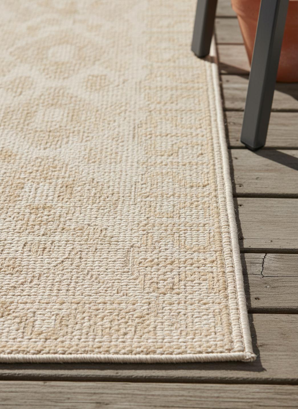 La palette, dominée par des tons doux et enveloppants, célèbre le beige dans toutes ses nuances : il sublime les motifs sans les écraser, accentue la chaleur visuelle et assure une lecture apaisée de chaque frise et chaque losange. La double vocation d'intérieur et d'extérieur élargit les possibilités décoratives, donnant naissance à une atmosphère de terroir contemporain, adaptée aux seuils comme aux terrasses abritées.