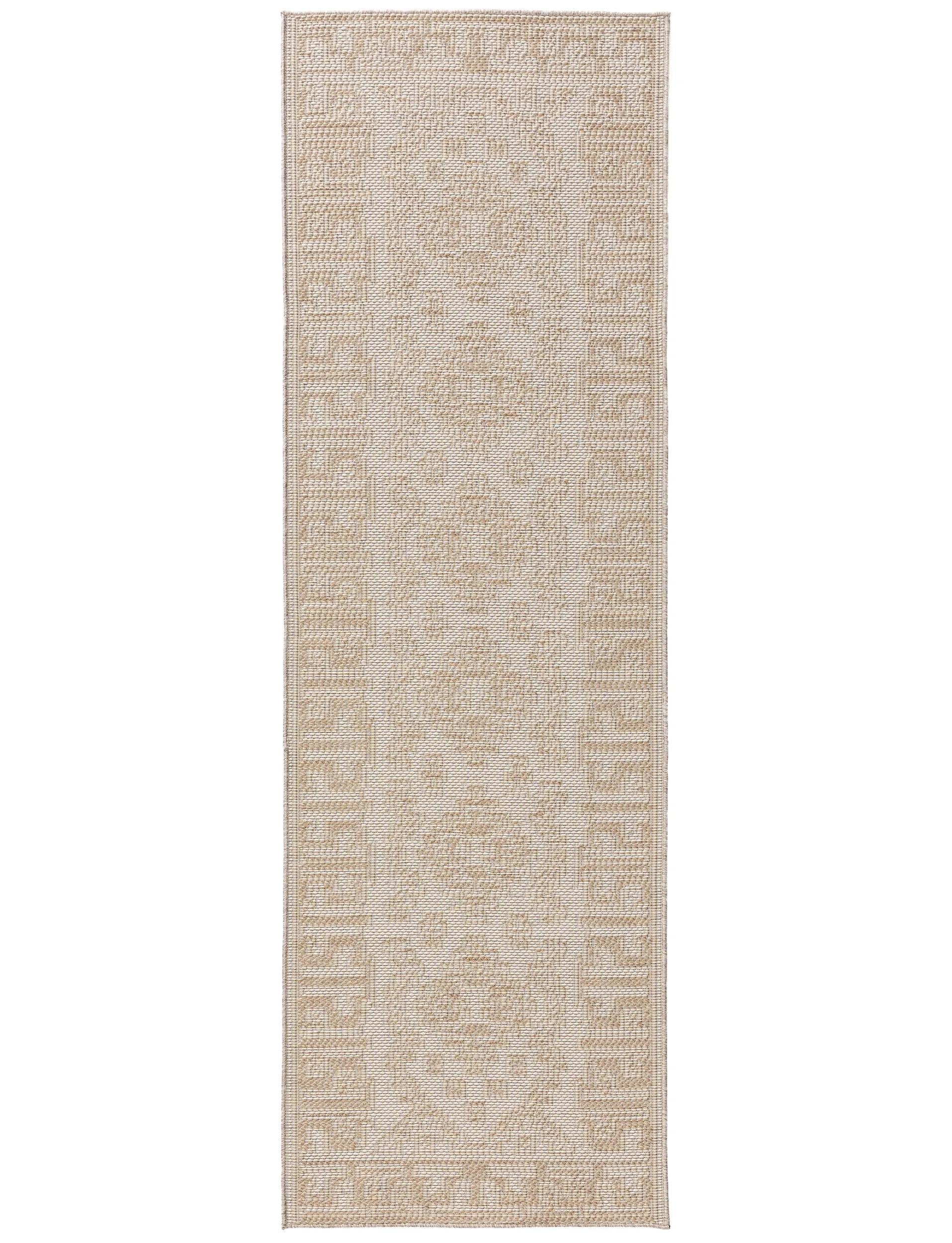 Tapis géométrique motif ethnique de couloir beige d'intérieur et d'extérieur 80x250 cm