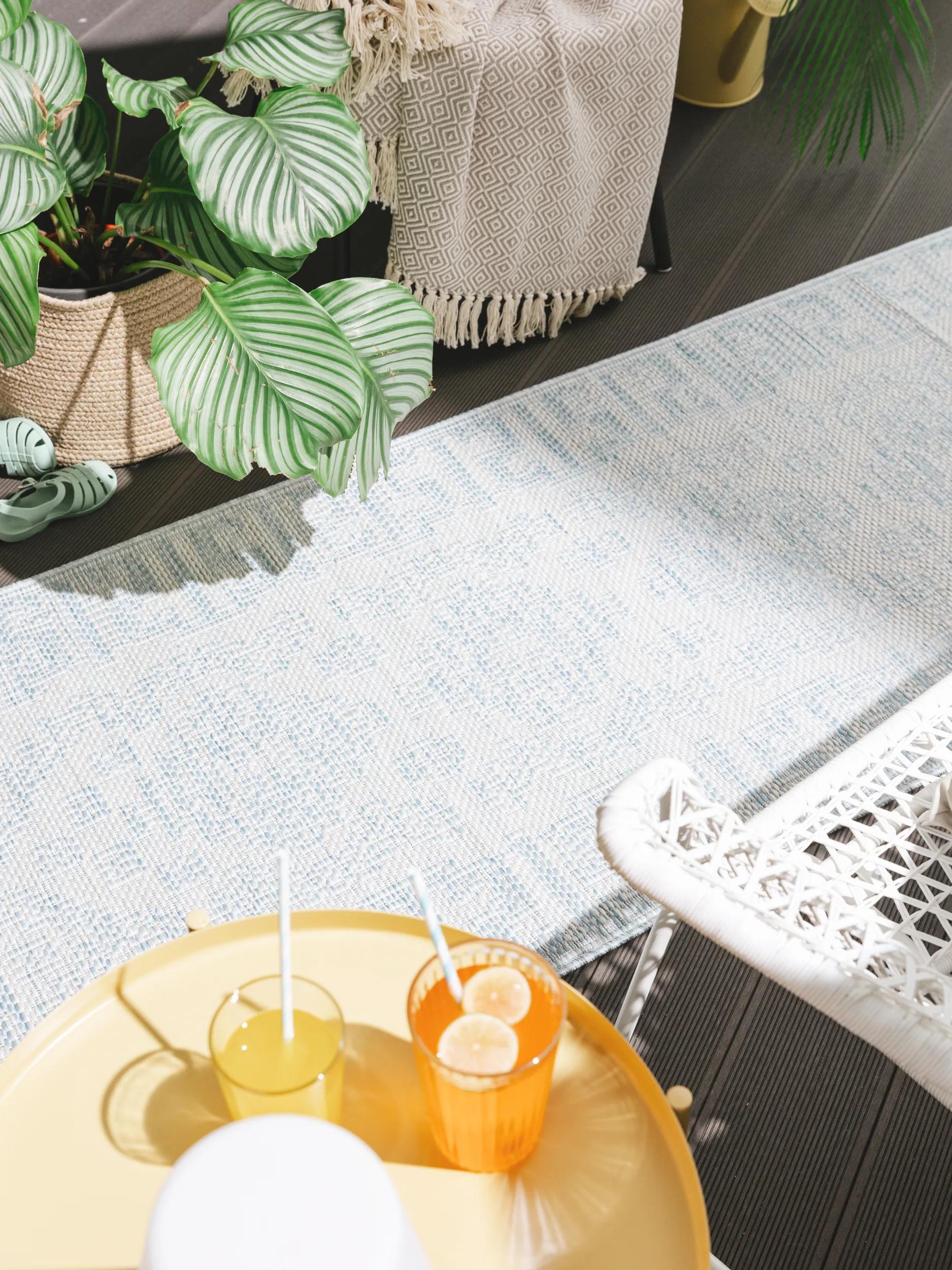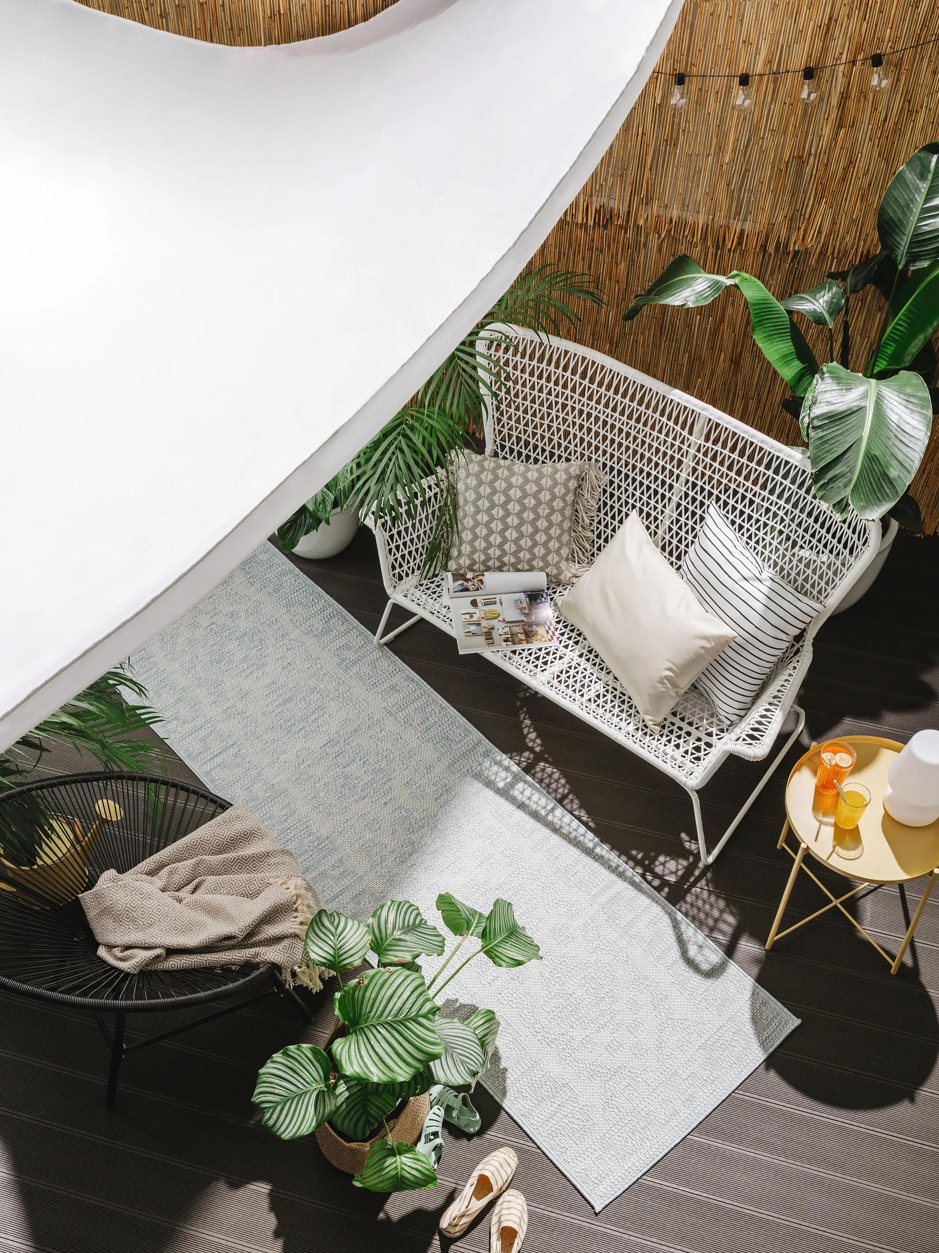 Adapté à des ambiances intérieur et extérieur, le ton bleu s'enrichit de nuances et joue avec la lumière pour offrir une chaleur visuelle même en plein air. La sensation de textile artisanal est palpable dans le rendu, restituant le relief des tissages et la finesse des bordures. Conçu pour un intérieur bohème moderne, il dialogue aussi bien avec une chambre apaisée qu'avec un salon où la décoration mise sur des matières naturelles et un esprit voyageur.