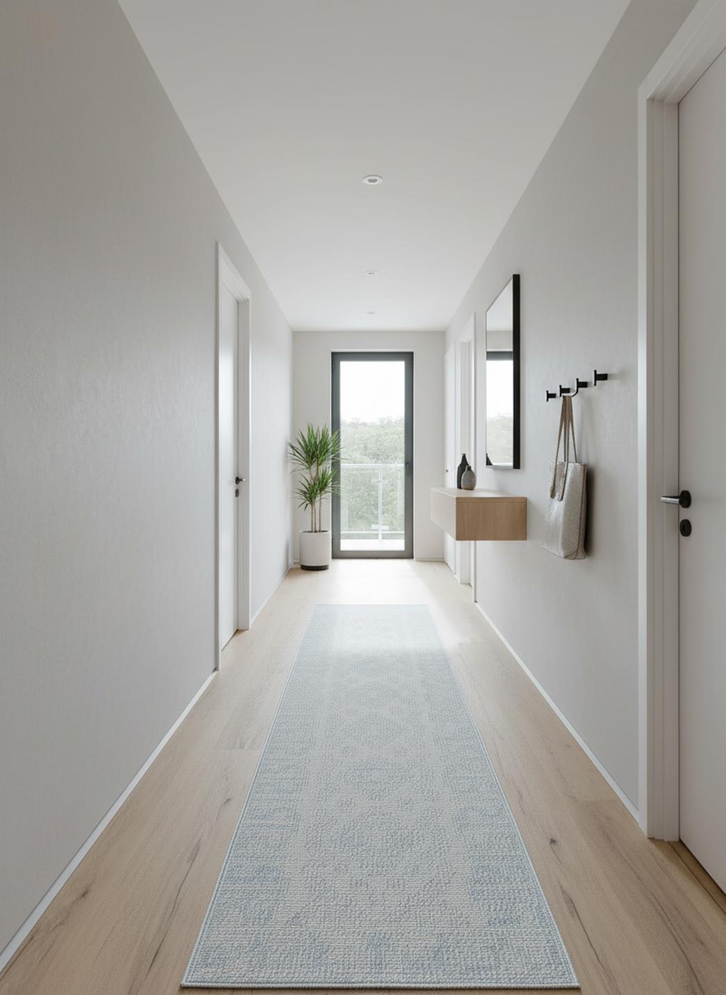 La longueur pensée pour un couloir transforme l'espace en un parcours visuel : ce tapis guide le regard, allonge la perspective et structure la circulation avec une délicatesse contemporaine. Sa silhouette 80x250 cm souligne l'architecture du lieu sans l'écraser, offrant un point d'appui raffiné qui met en scène meuble après meuble, du banc d'entrée à la console ou au long buffet du salon.