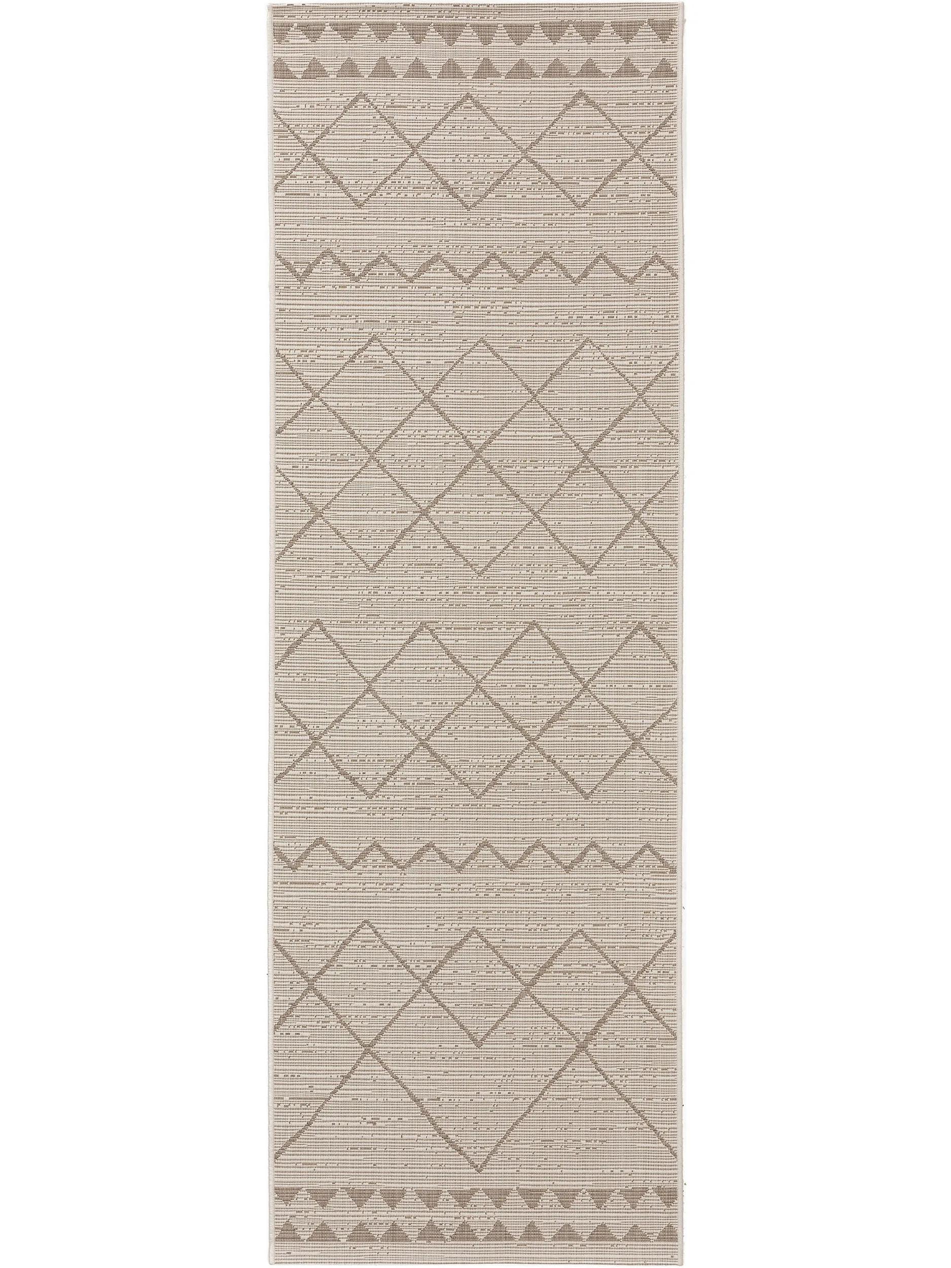 Tapis géométrique motif ethnique de couloir crème et beige d'intérieur et d'extérieur 80x240 cm