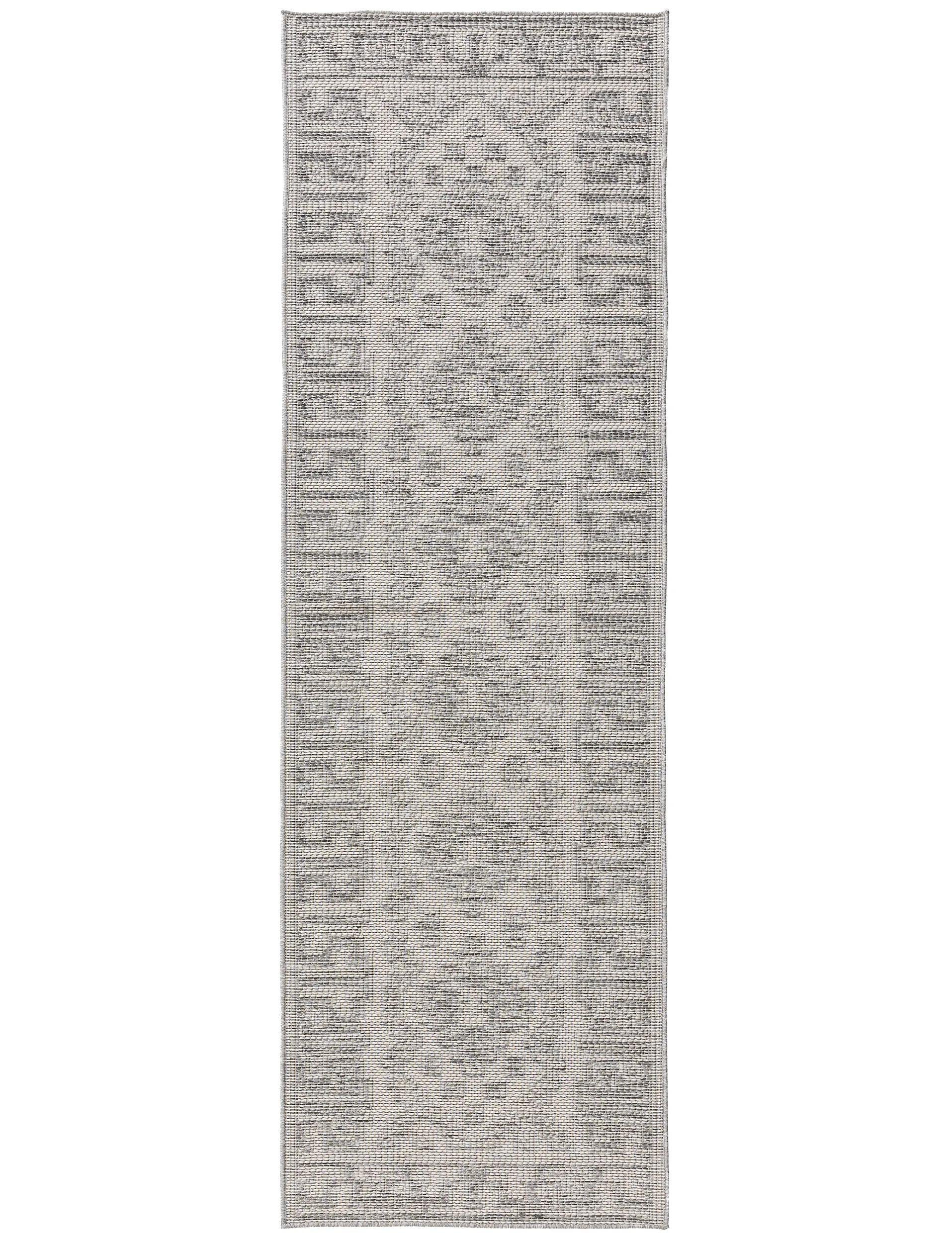 Tapis géométrique motif ethnique de couloir gris d'intérieur et d'extérieur 80x250 cm