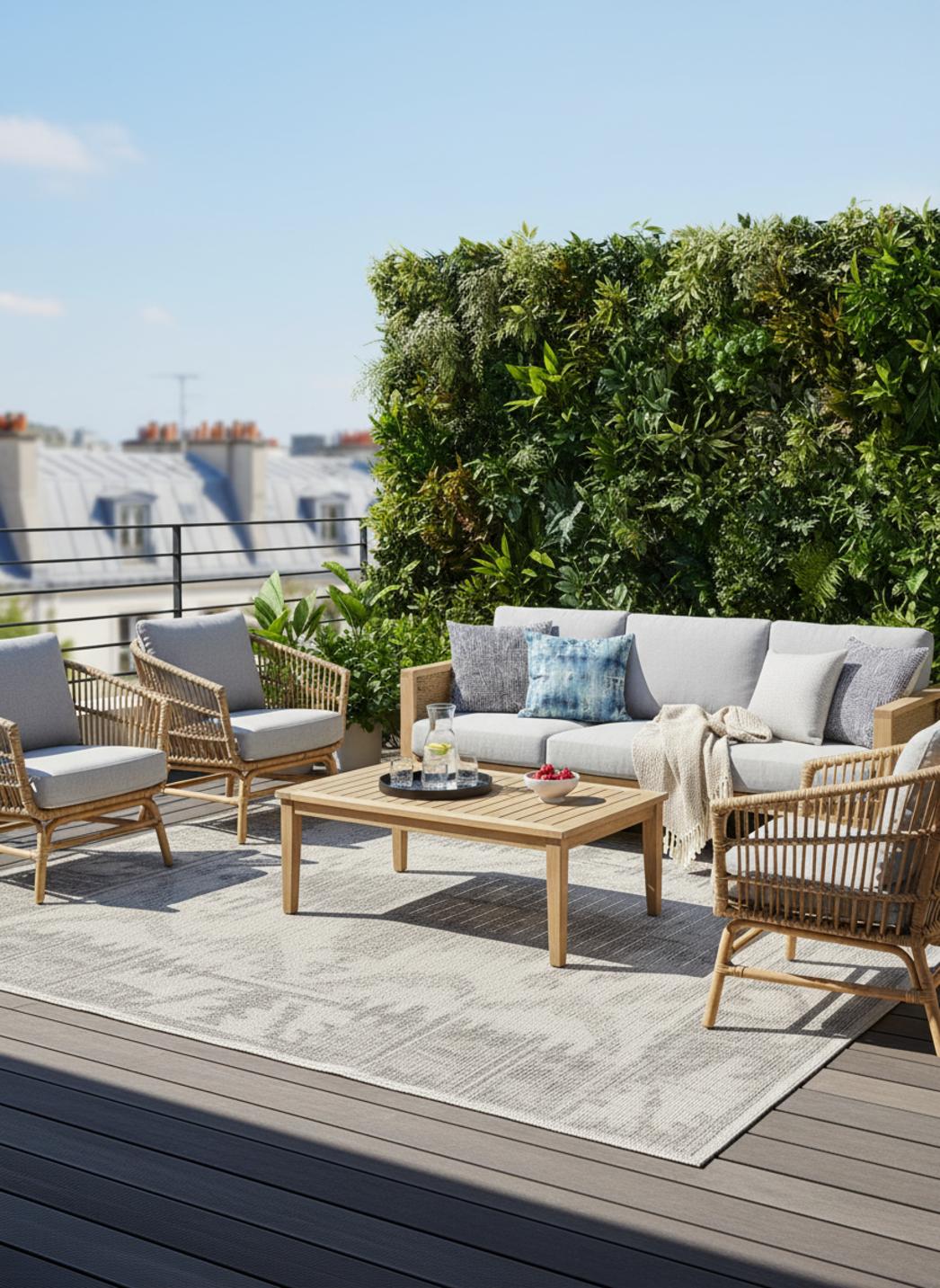 Pensé pour vivre autant en intérieur qu'en extérieur, ce modèle au format 120x170 cm se pose naturellement comme un point d'ancrage des espaces, guidant le regard sans alourdir la pièce et offrant une chaleur visuelle qui transforme le mobilier en une scène harmonieuse. Les symboles géométriques y trouvent un nouvel équilibre, à la fois décoratif et apaisant.