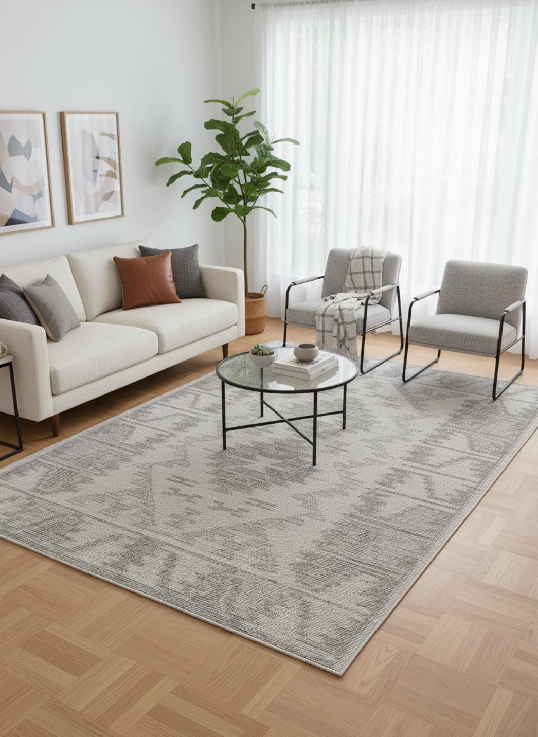 Tapis géométrique motif ethnique gris d'intérieur et d'extérieur 120x170 cm
