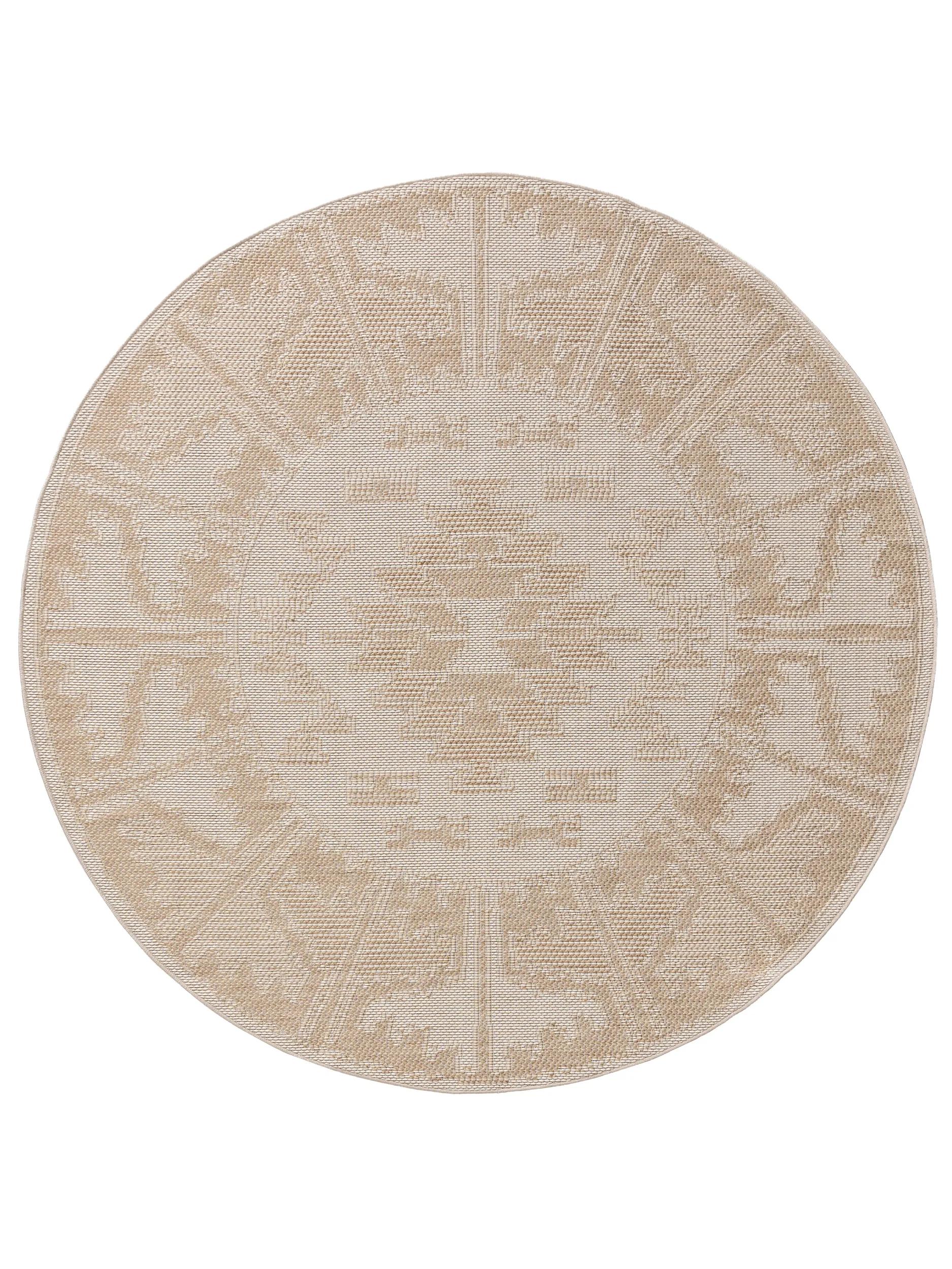 Tapis géométrique motif ethnique rond beige d'intérieur et d'extérieur 200 cm de diamètre