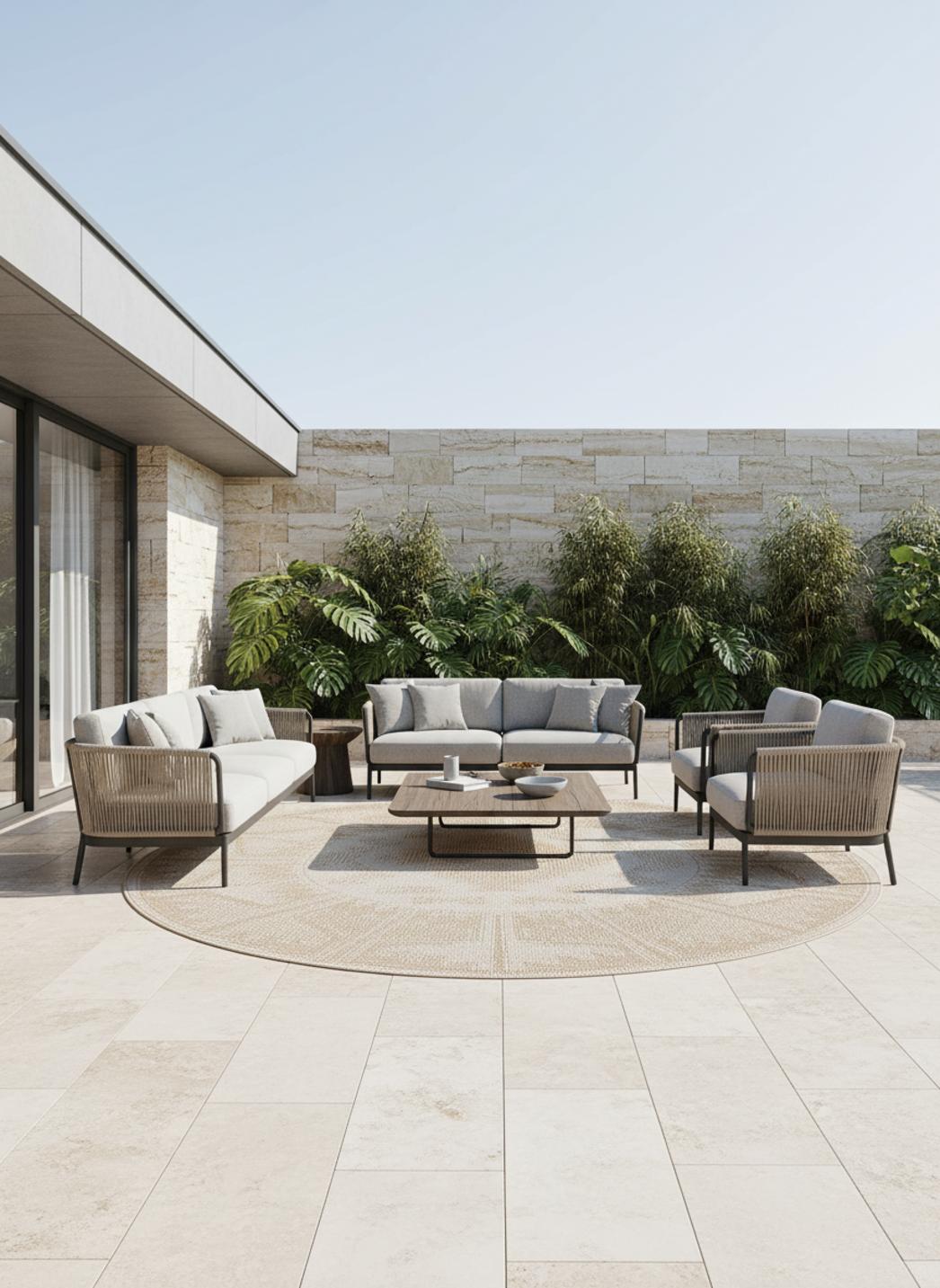 Pensé pour évoluer entre d'intérieur et d'extérieur, il conserve une allure raffinée face aux usages variés : terrasse abritée, balcon cosy ou séjour lumineux. Les textures restent lisibles et accueillantes, et l'entretien se fait en douceur — une aspiration douce suffit pour préserver la finesse du tissage et assurer une bonne tenue dans le temps sans compromettre la richesse visuelle.