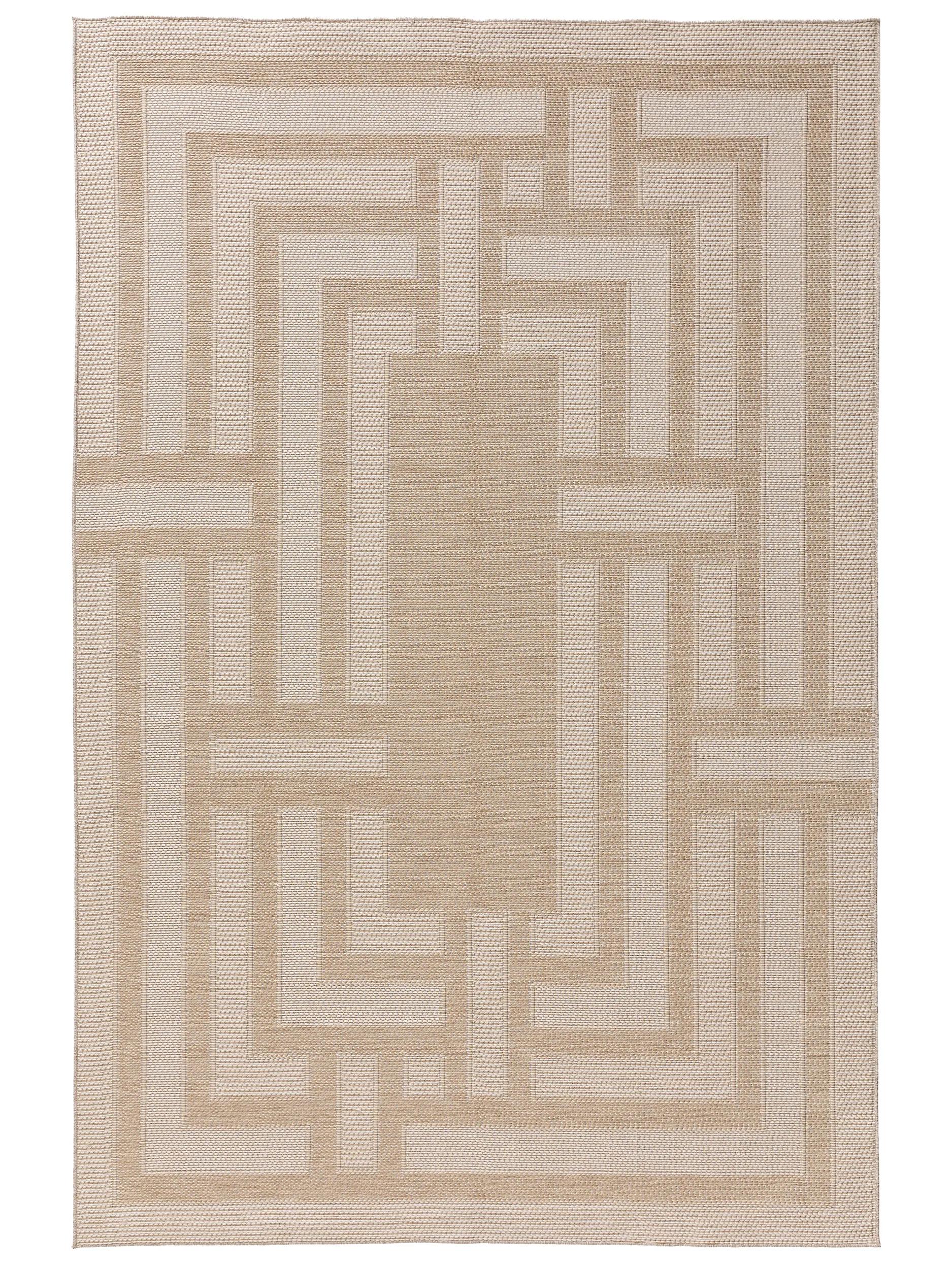 Tapis géométrique motif labyrinthe beige d'intérieur et d'extérieur 200x290 cm