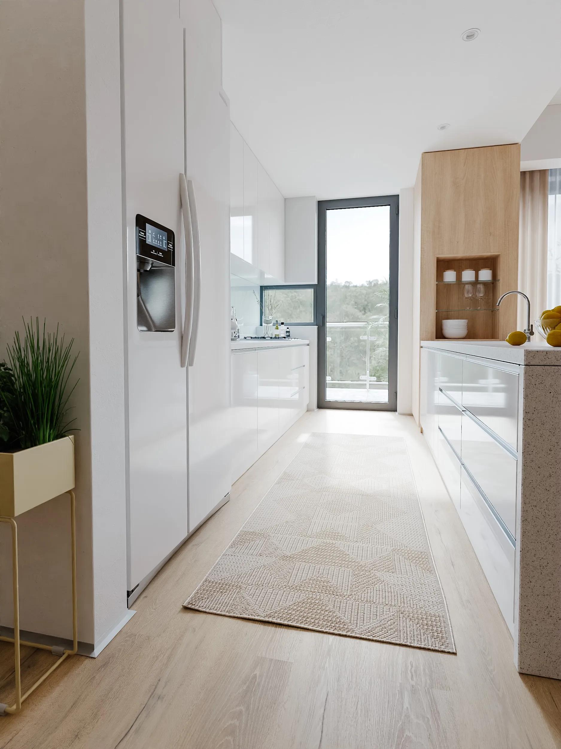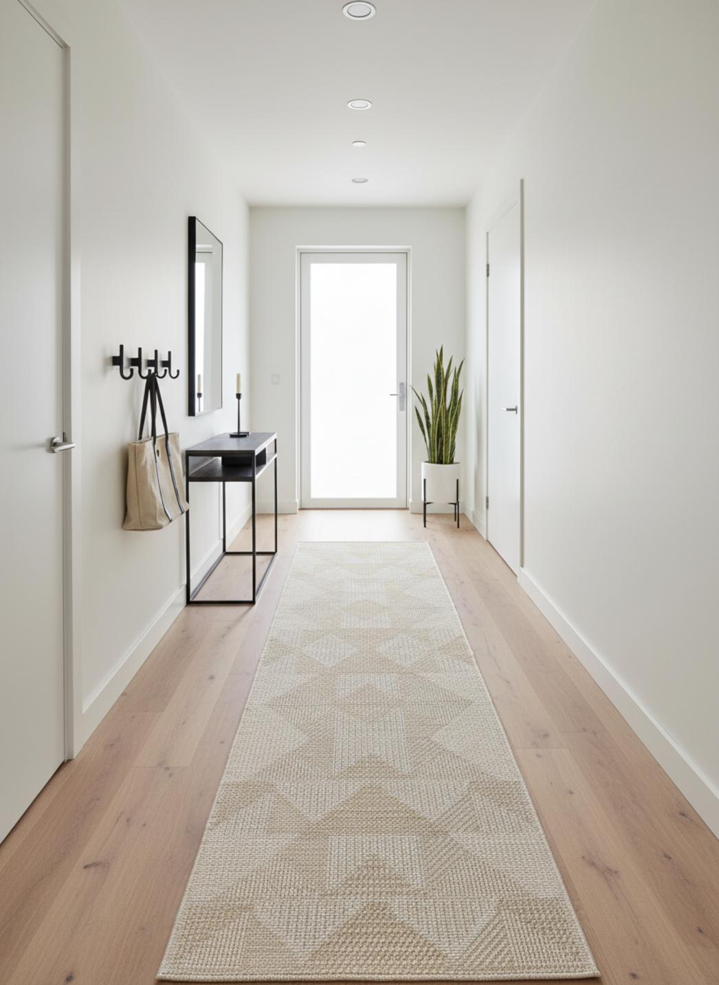 Dans un passage étroit, la géométrie devient axe : pensée pour un couloir, cette longueur souligne la perspective et guide le regard. À l’échelle de 80x250 cm, le tapis structure l’espace sans l’envahir, allonge la perspective et porte le mobilier vers un point d’ancrage. Le format crée un fil conducteur, dynamisant le parcours tout en réconciliant fonctionnalité et sophistication.