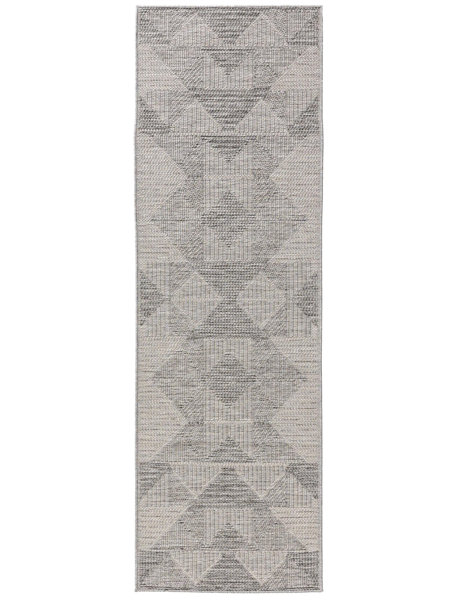 Tapis géométrique motif losange de couloir gris d'intérieur et d'extérieur 80x250 cm
