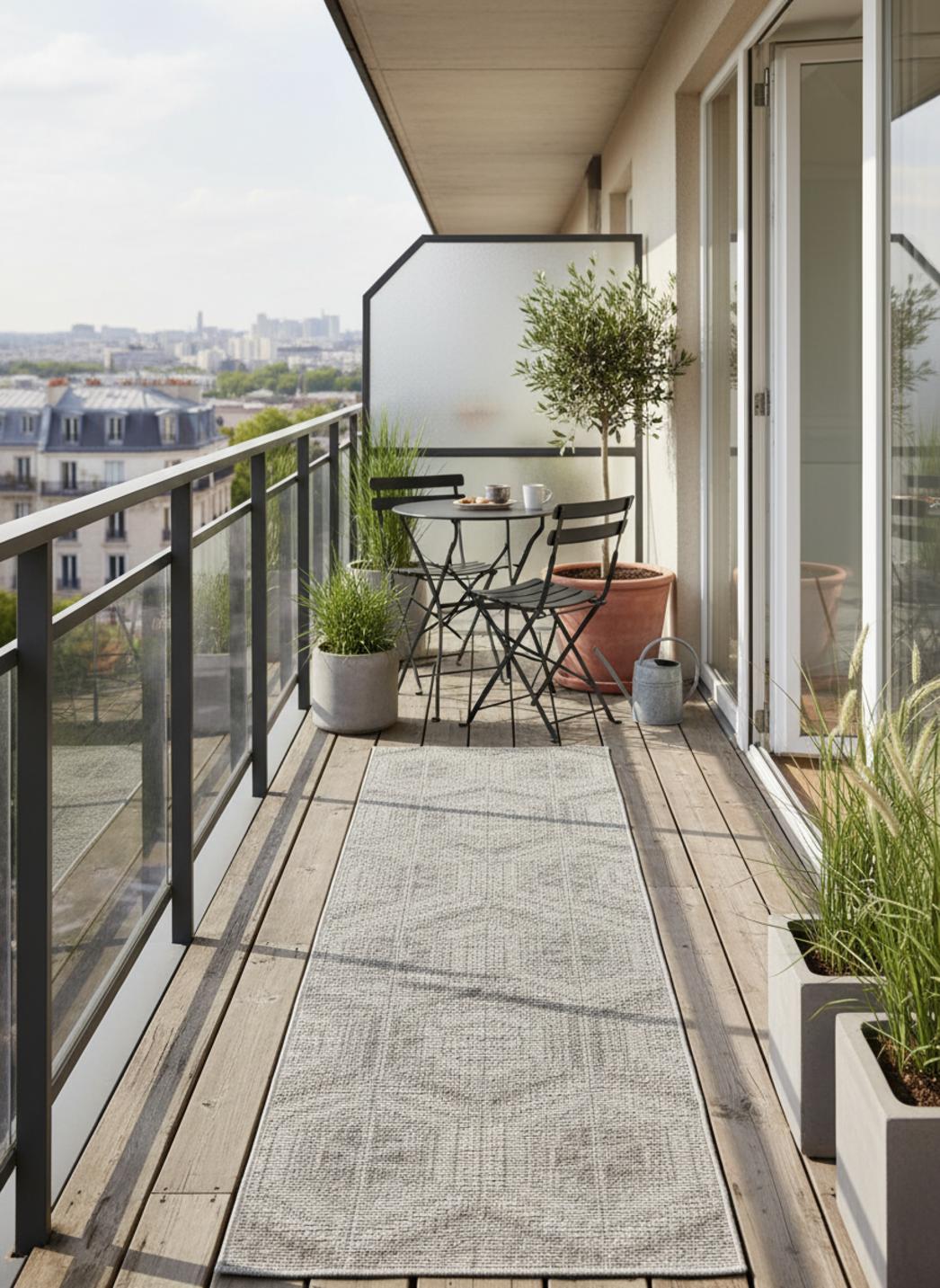 Modulant la circulation et la fonctionnalité, ce tapis traverse les usages du intérieur au extérieur avec une évidence pratique et élégante. Le tissage plat offre une tenue verticale et un contact discret, la surface accompagne la marche sans écrire d'histoire sonore excessive. Posé sous une console ou devant une porte, il affirme le seuil tout en restant discret et confortable.