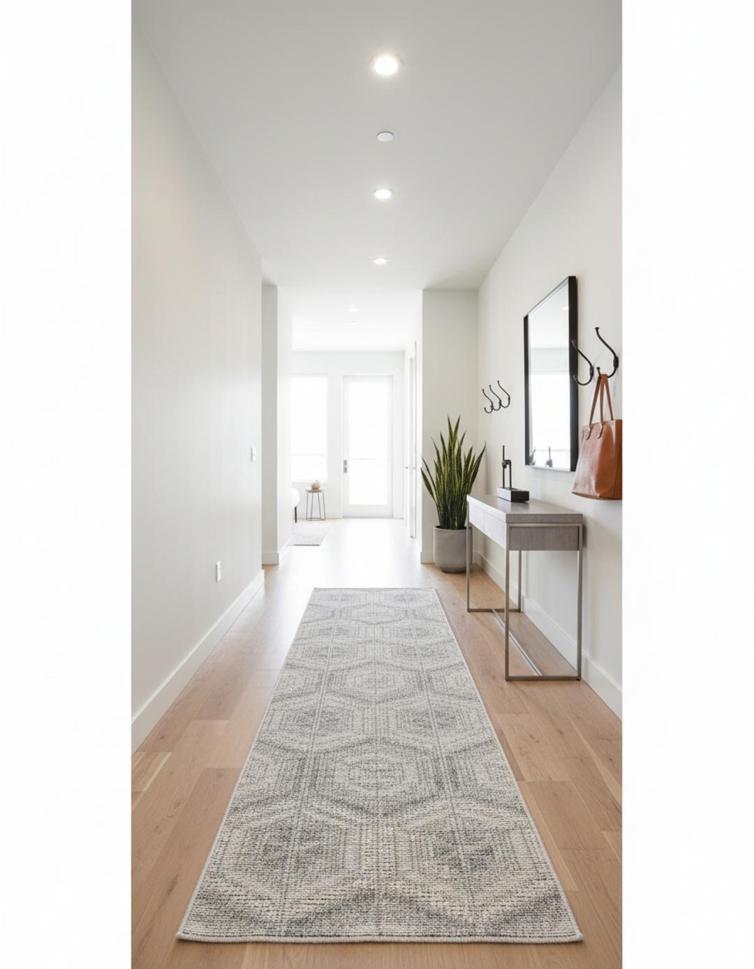 Tapis géométrique motif nid d'abeille de couloir gris d'intérieur et d'extérieur 80x250 cm