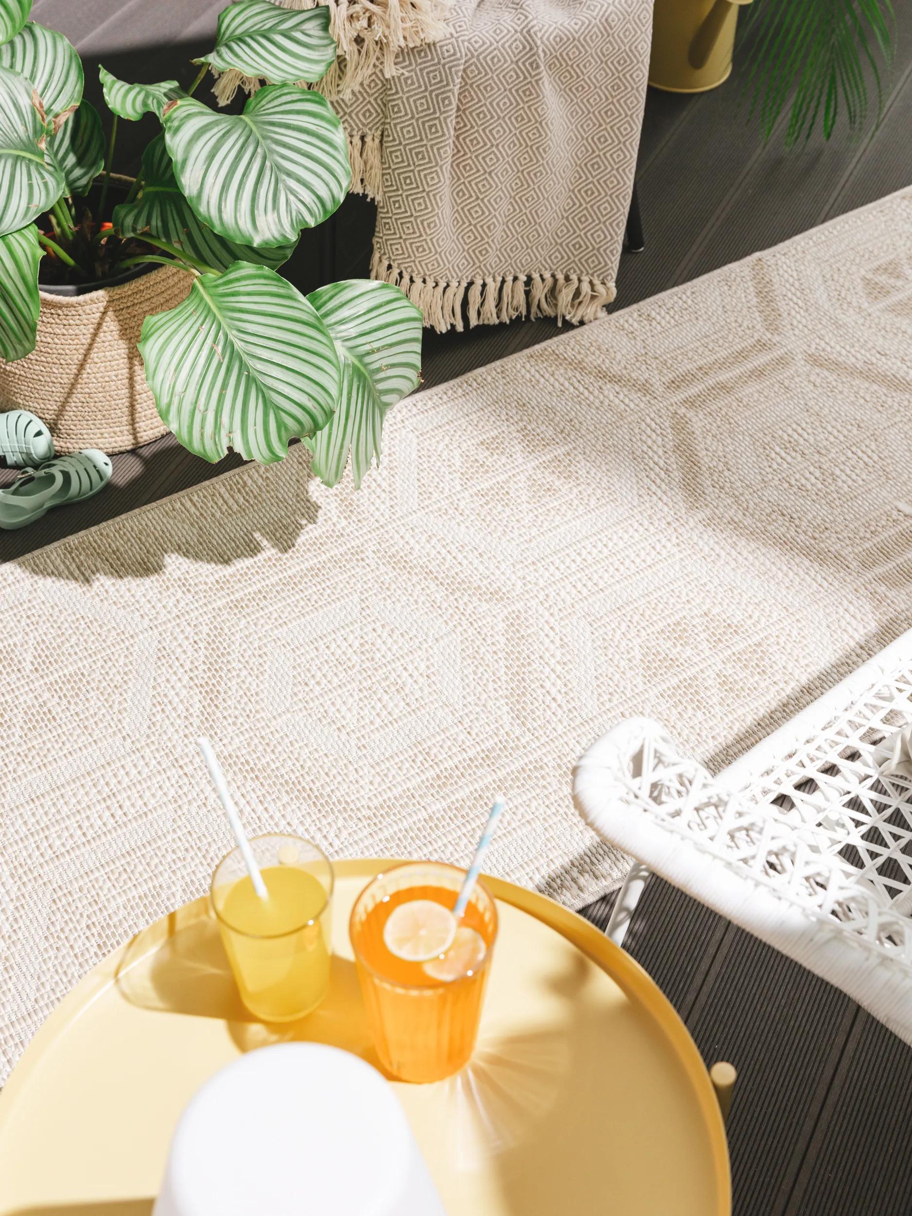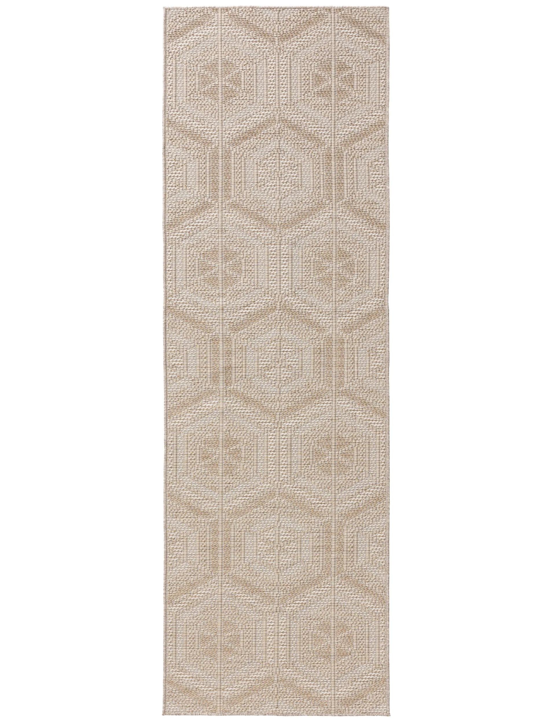Tapis géométrique motif nid d'abeille de couloir marron camel d'intérieur et d'extérieur 80x250 cm