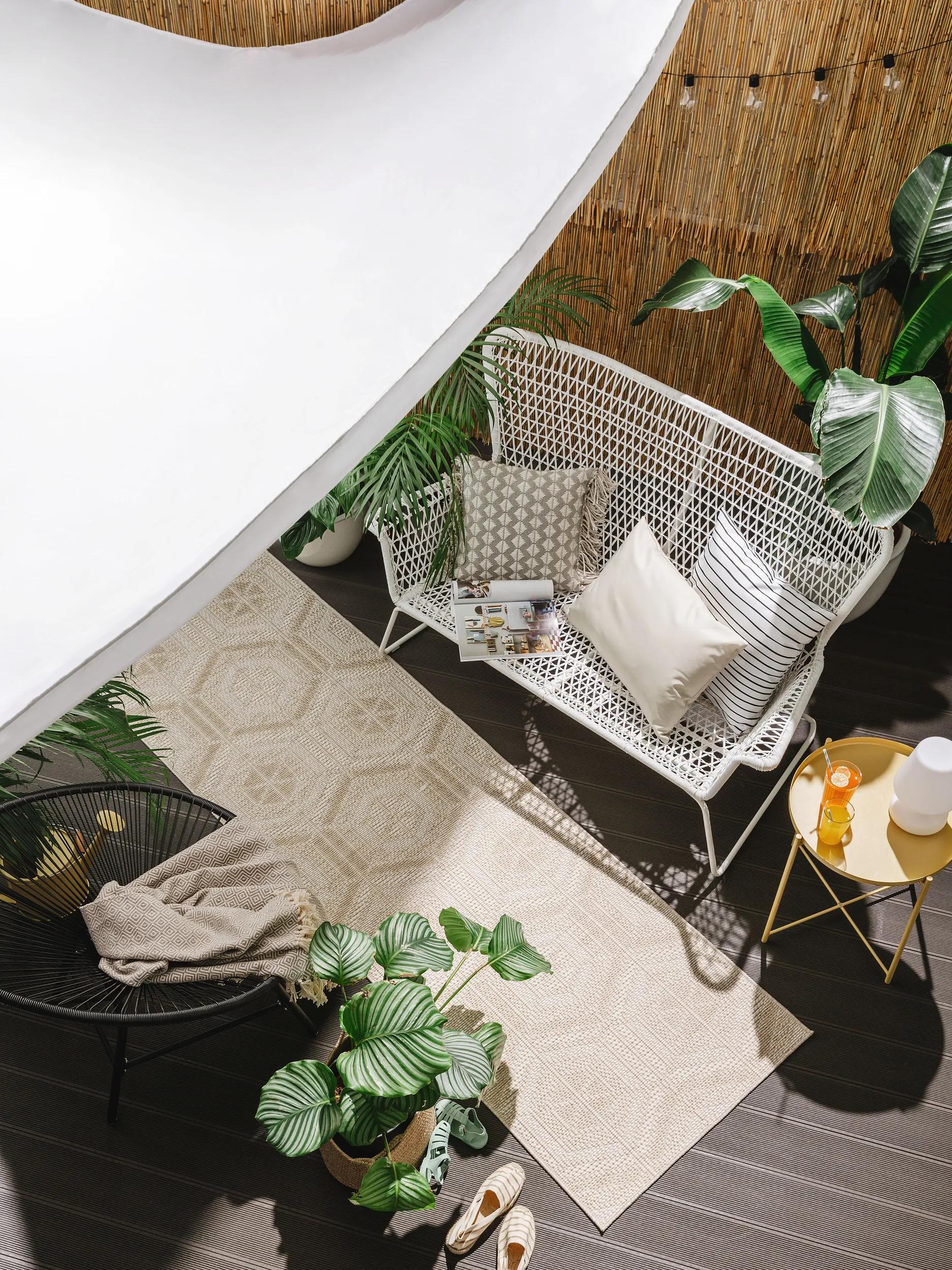 La conception adaptée au intérieur et au extérieur le rend versatile : posé sur une terrasse abritée, il module la lumière et capte les ombres ; installé dans une entrée, il structure l’espace et accueille les allées et venues. Sa construction contemporaine résiste aux usages quotidiens tout en restant discrètement raffinée.
