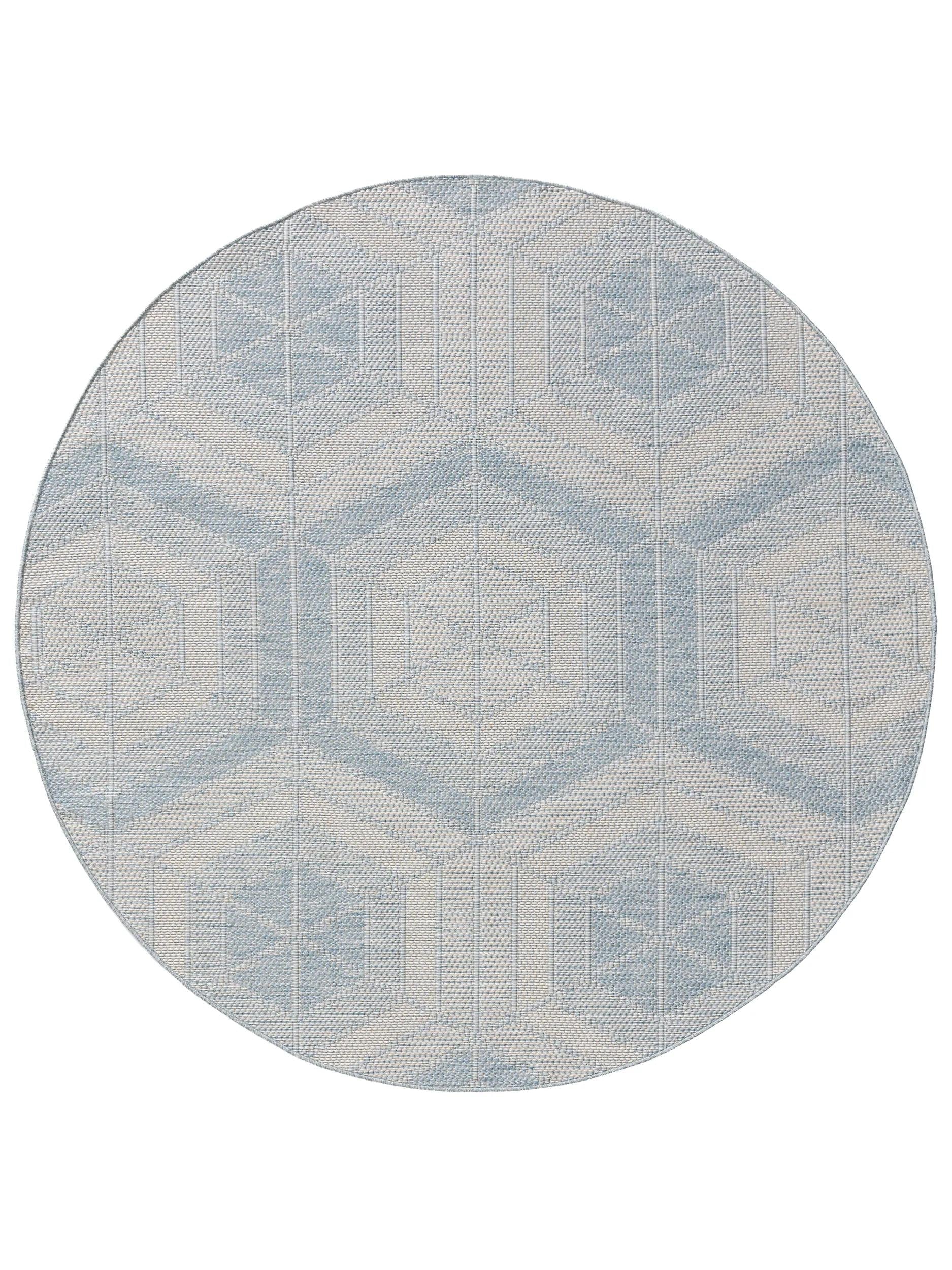 Tapis géométrique motif nid d'abeille rond bleu et beige d'intérieur et d'extérieur 160 cm de diamètre