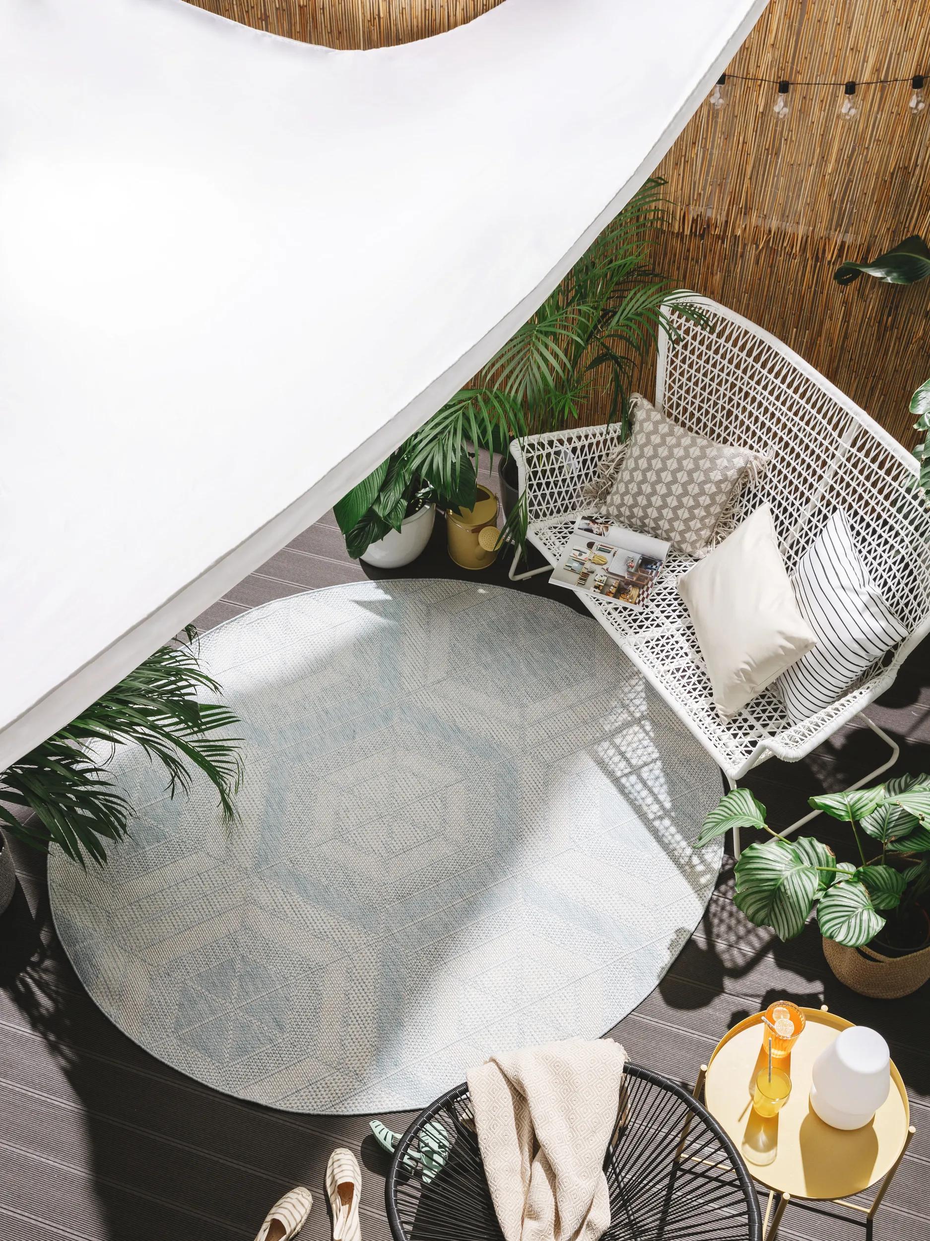 Dans une entrée, un salon ou sur une terrasse couverte, la silhouette rond apporte un contraste doux aux lignes rectilignes du mobilier. Elle crée une poche chaleureuse où le regard se repose, adoucissant les angles et offrant une sensation de cocon, particulièrement agréable au toucher des pieds nus.