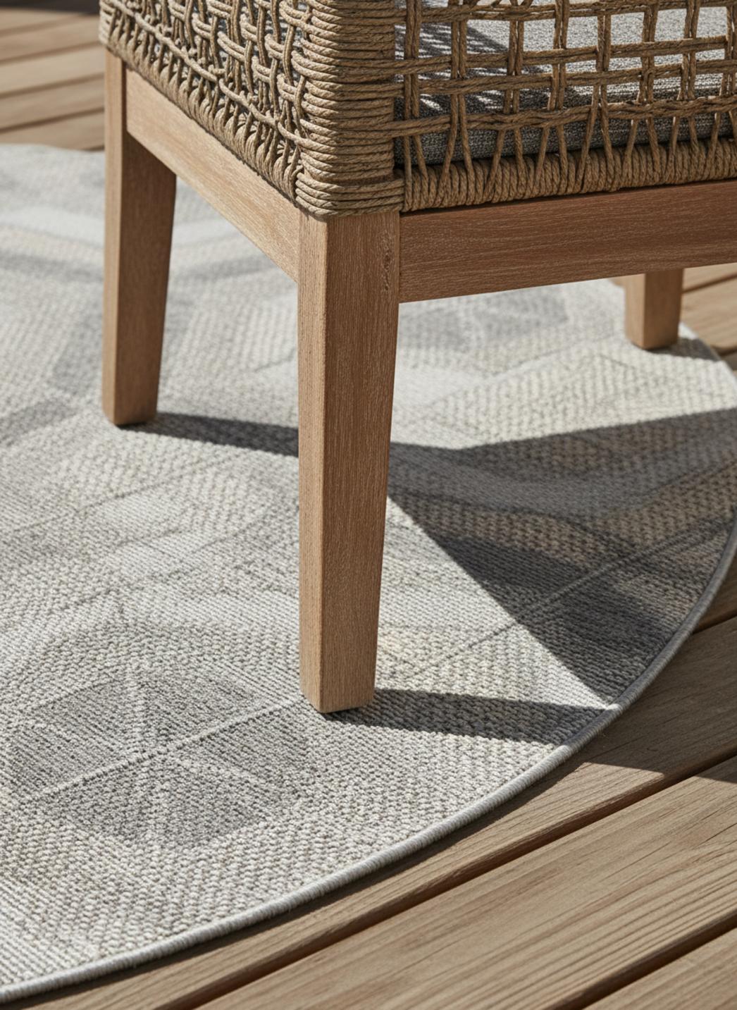 Tapis géométrique motif nid d'abeille rond gris d'intérieur et d'extérieur 160 cm de diamètre