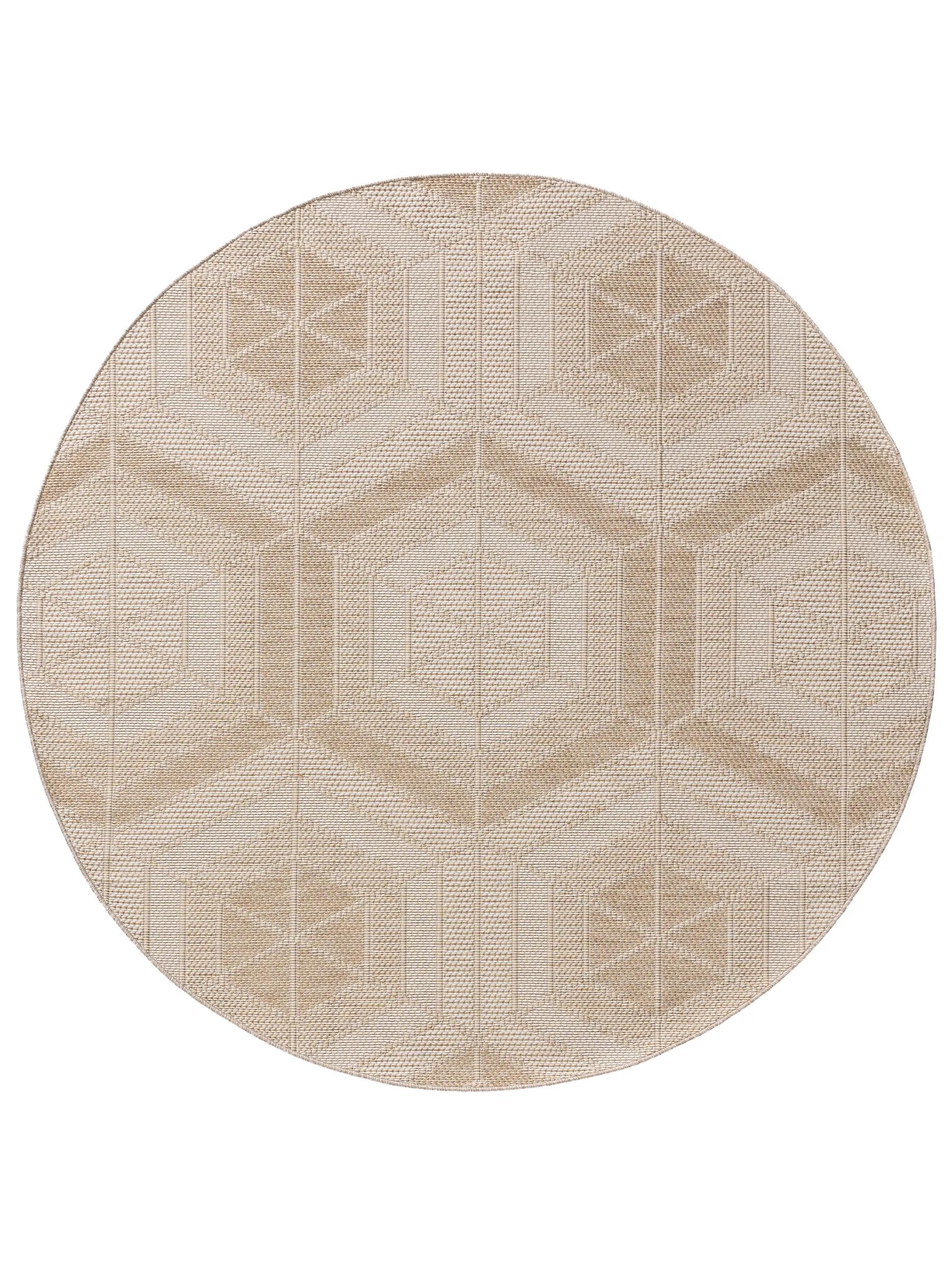 Tapis géométrique motif nid d'abeille rond marron camel d'intérieur et d'extérieur 160 cm de diamètre