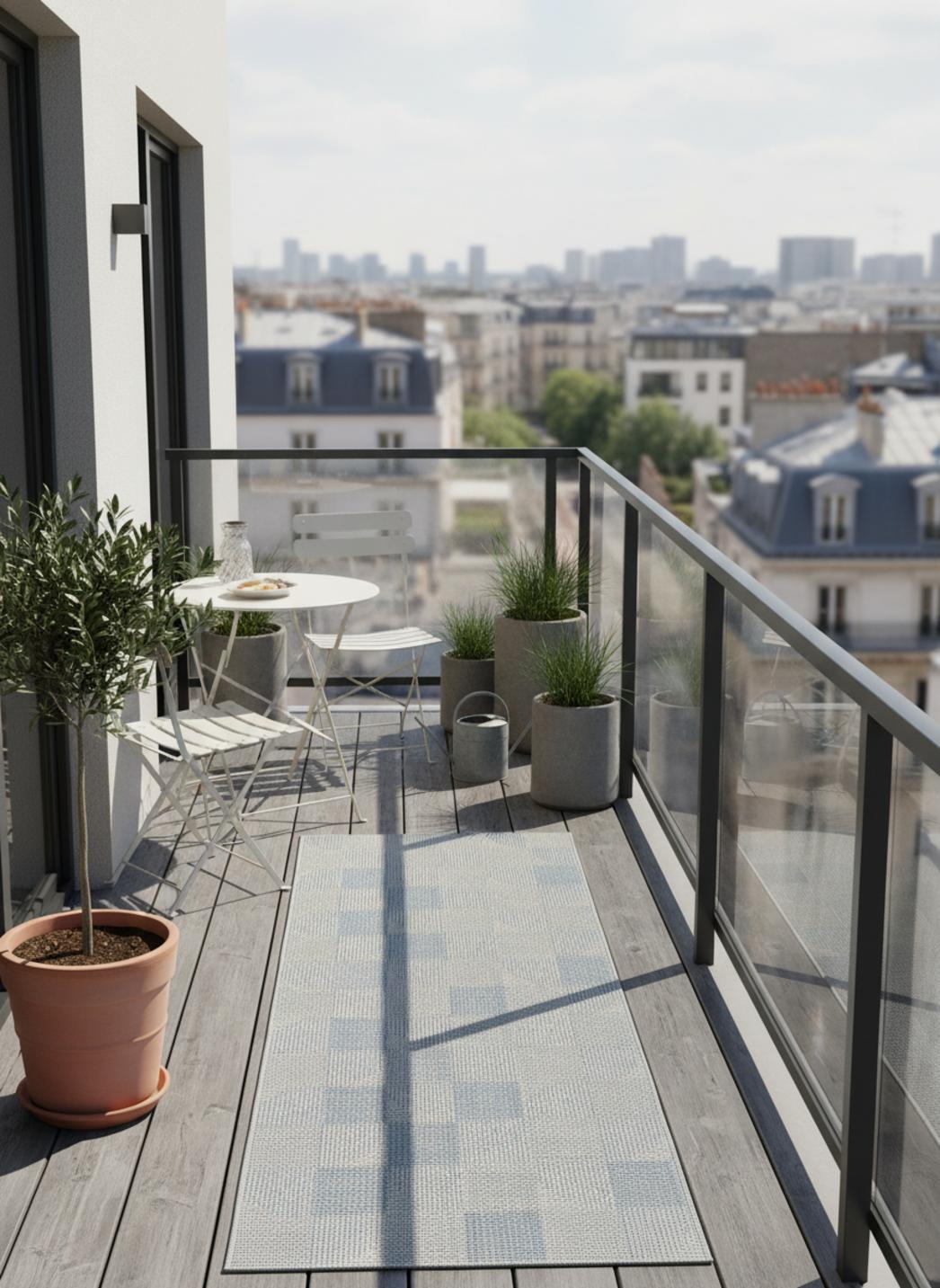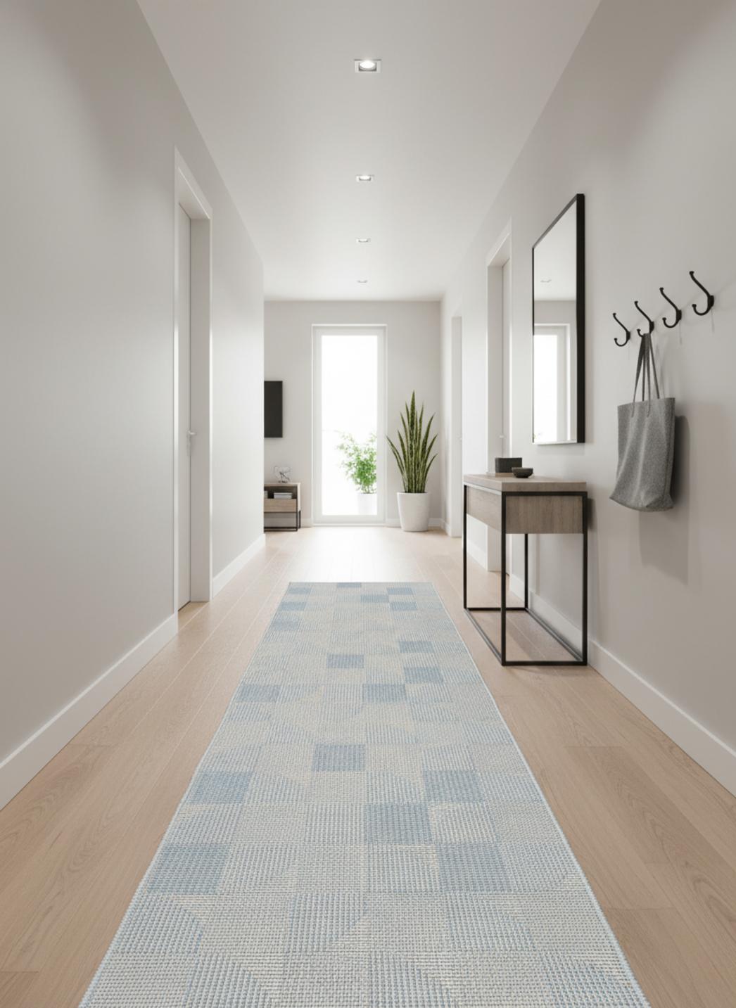 Le tapis géométrique à motif patchwork de couloir bleu évoque la fluidité d’un chemin tissé de lumière et de fraîcheur. Ses formes géométriques s’enchaînent avec équilibre, tandis que le bleu, apaisant et profond, apporte une touche de sérénité à la circulation. Les nuances se mêlent dans un jeu subtil qui dynamise l’espace sans le surcharger. En 80x250 cm, il accompagne le regard et la marche avec naturel, reliant les pièces dans une continuité visuelle harmonieuse. Ce modèle s’inscrit dans la modernité élégante des tapis d’extérieur, où la géométrie devient un langage décoratif intemporel. Son tissage à plat reflète les variations de la lumière, accentuant la richesse du motif selon le moment du jour. On retrouve cette même vitalité équilibrée dans la sélection de tapis de balcon, parfaite pour prolonger la sensation d’espace jusque dans les lieux les plus étroits. Un tapis qui transforme la transition en une véritable expérience visuelle et apaisante.