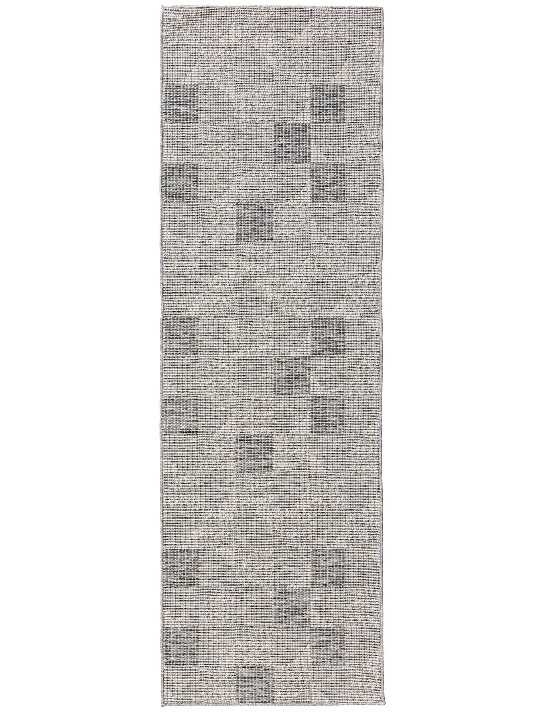 Tapis géométrique motif patchwork de couloir gris d'intérieur et d'extérieur 80x250 cm