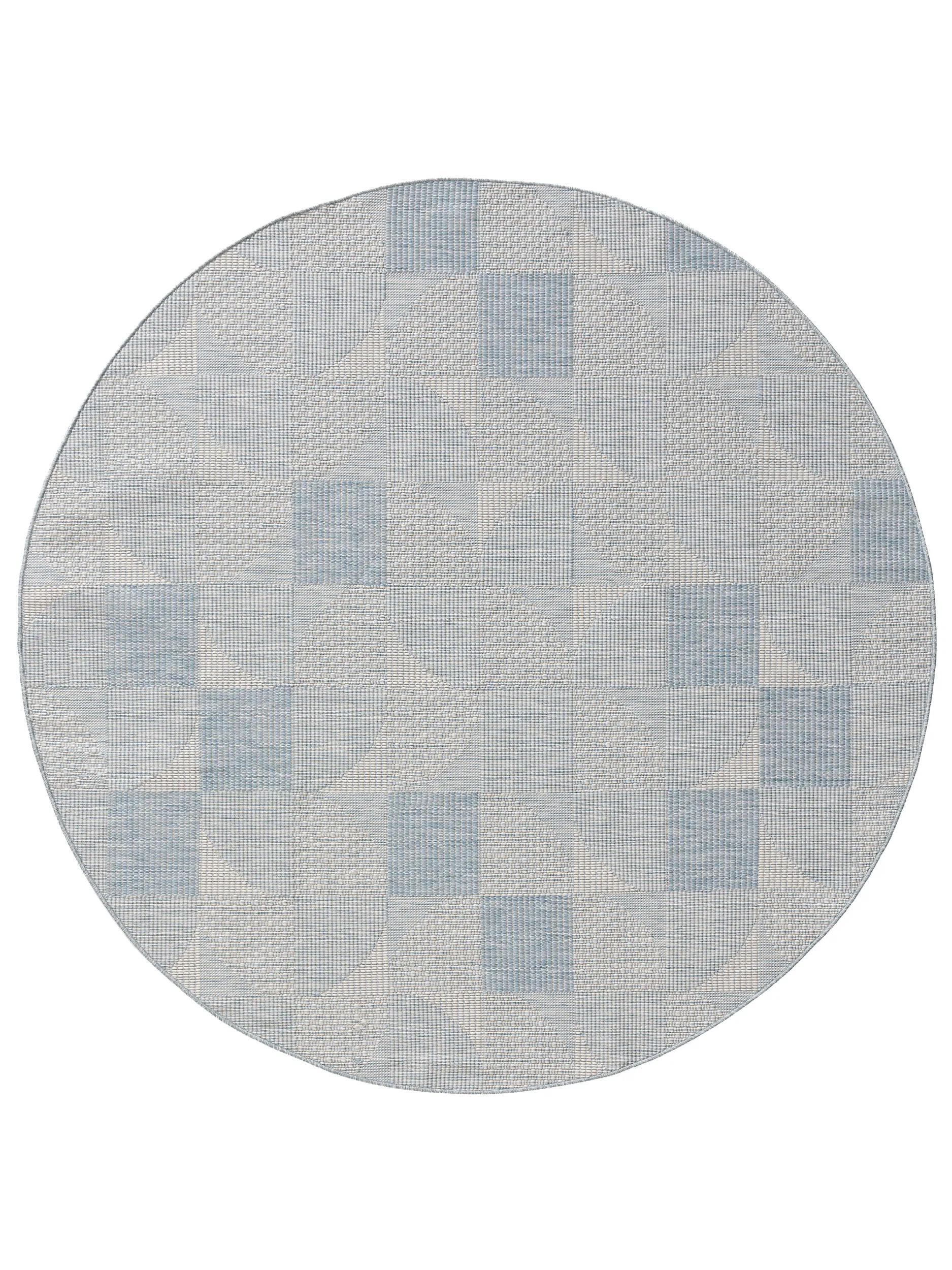 Tapis géométrique motif patchwork rond bleu d'intérieur et d'extérieur 200 cm de diamètre