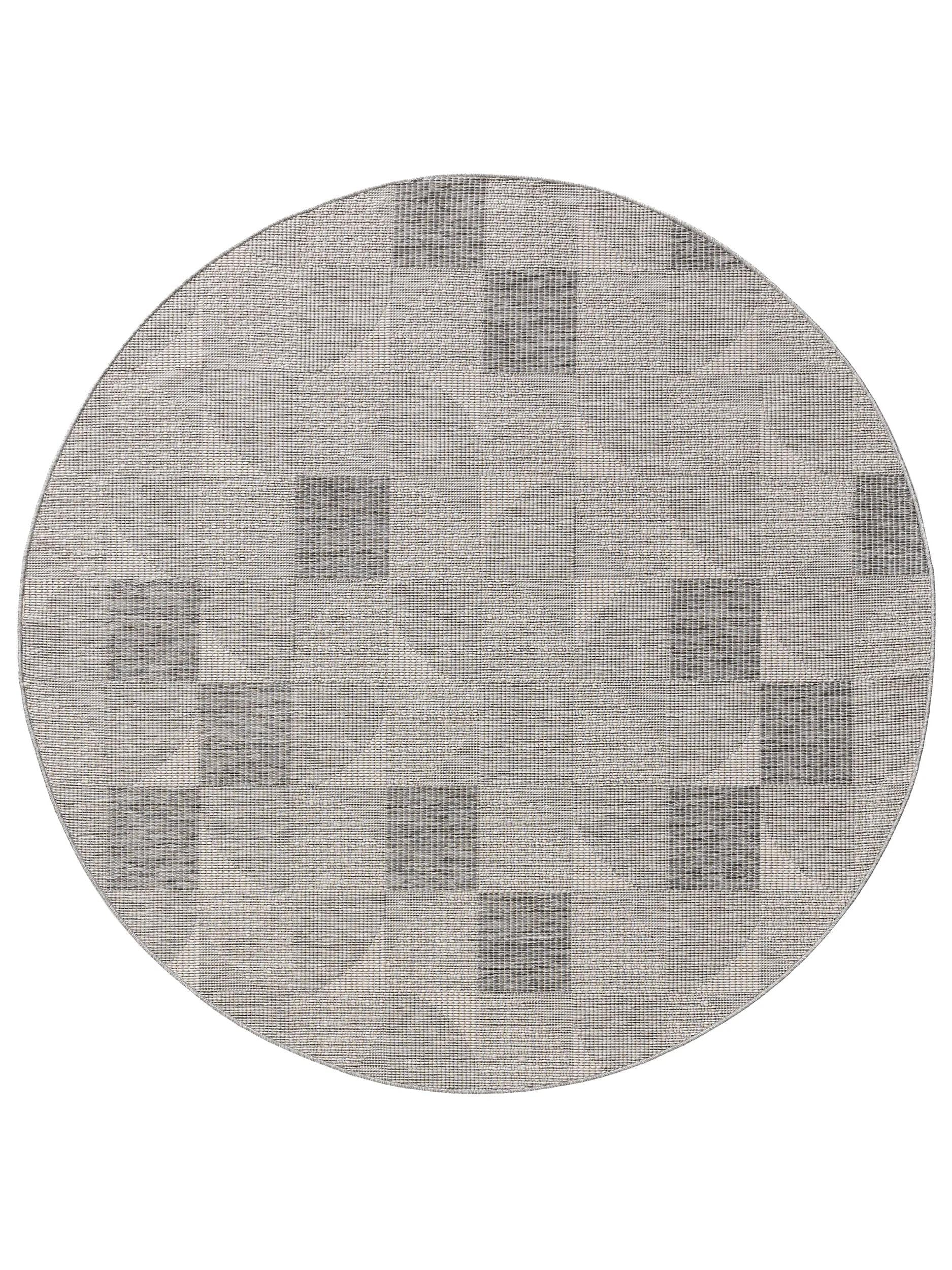 Tapis géométrique motif patchwork rond gris d'intérieur et d'extérieur 160 cm de diamètre