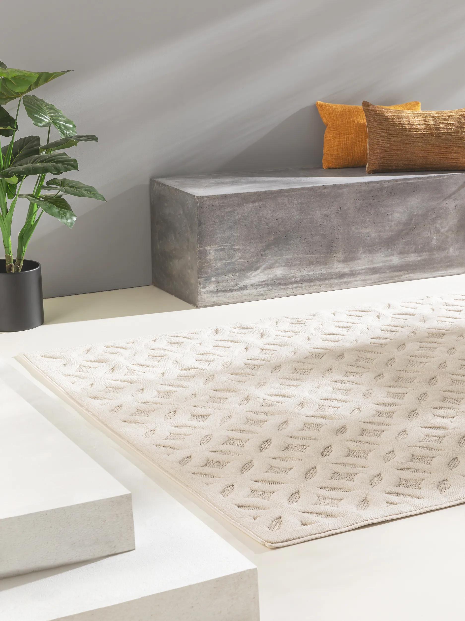 Tapis géométrique motif rosace crème d'intérieur et d'extérieur 200x290 cm