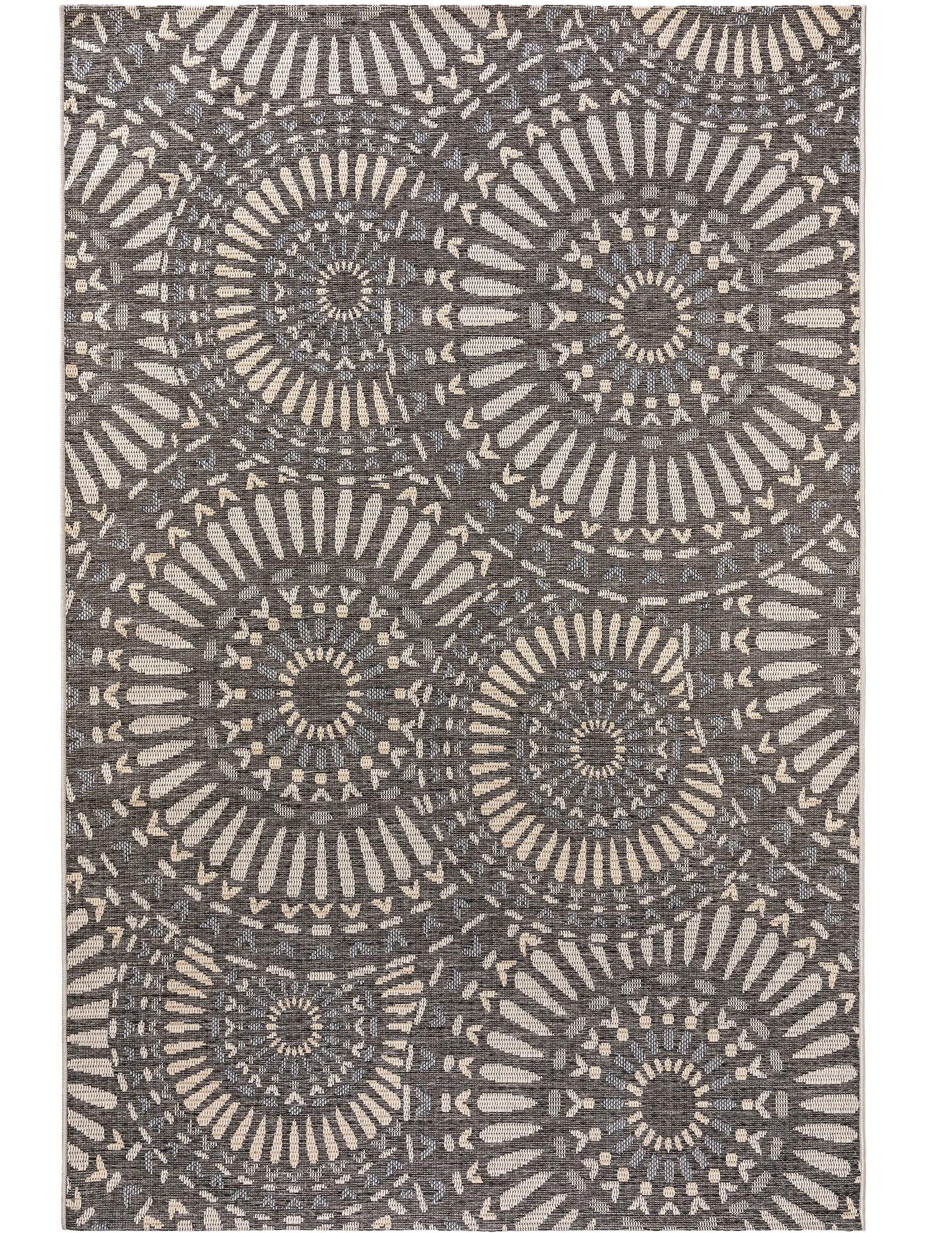 Tapis géométrique motif rosaces gris et beige d'intérieur et d'extérieur 100x150 cm