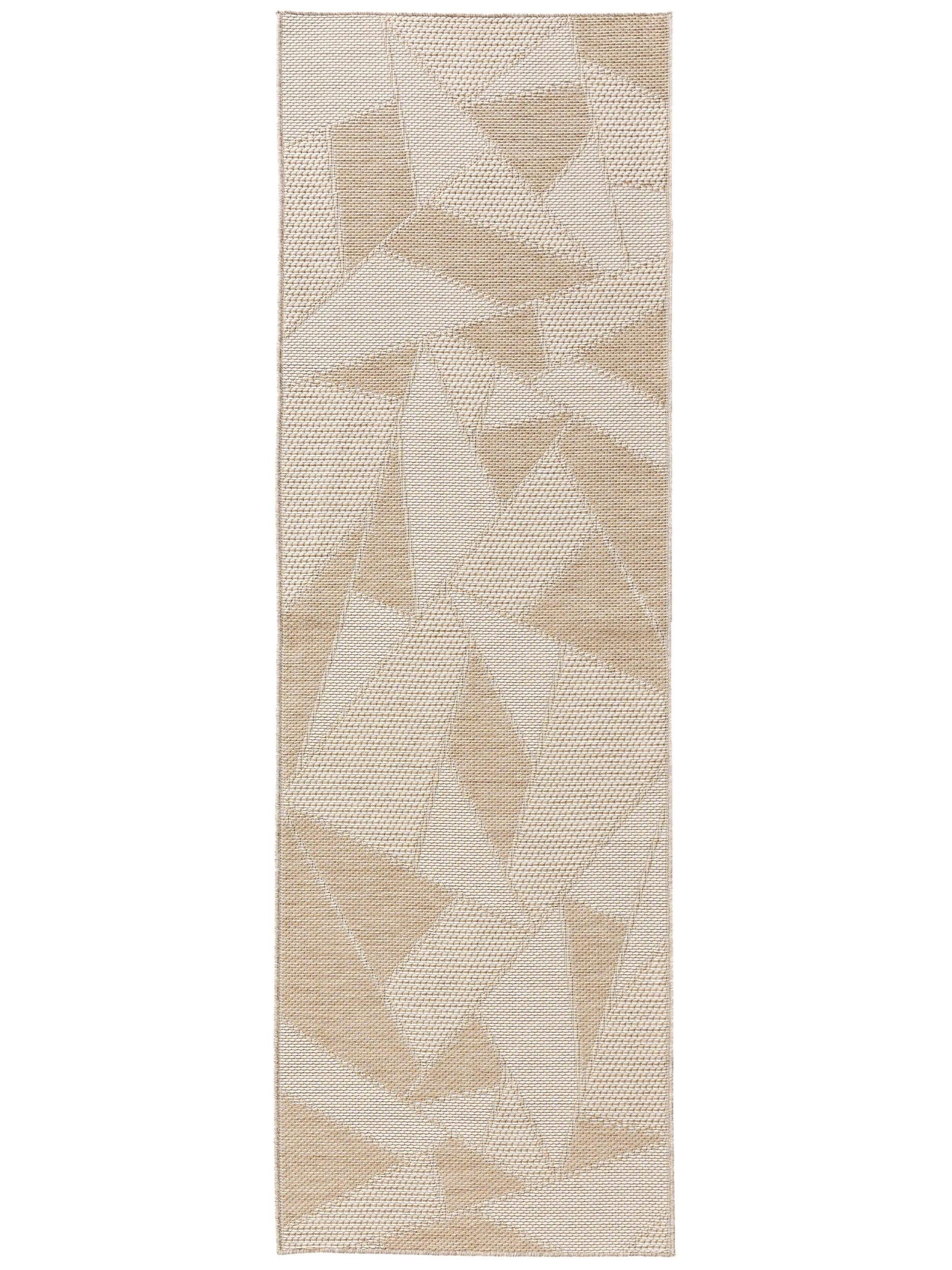 Tapis géométrique motif triangle de couloir beige d'intérieur et d'extérieur 80x250 cm