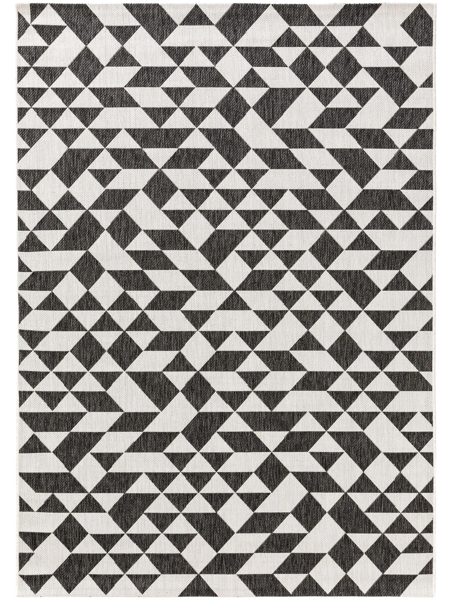 Tapis géométrique motif triangle noir et gris clair d'intérieur et d'extérieur 160x230 cm