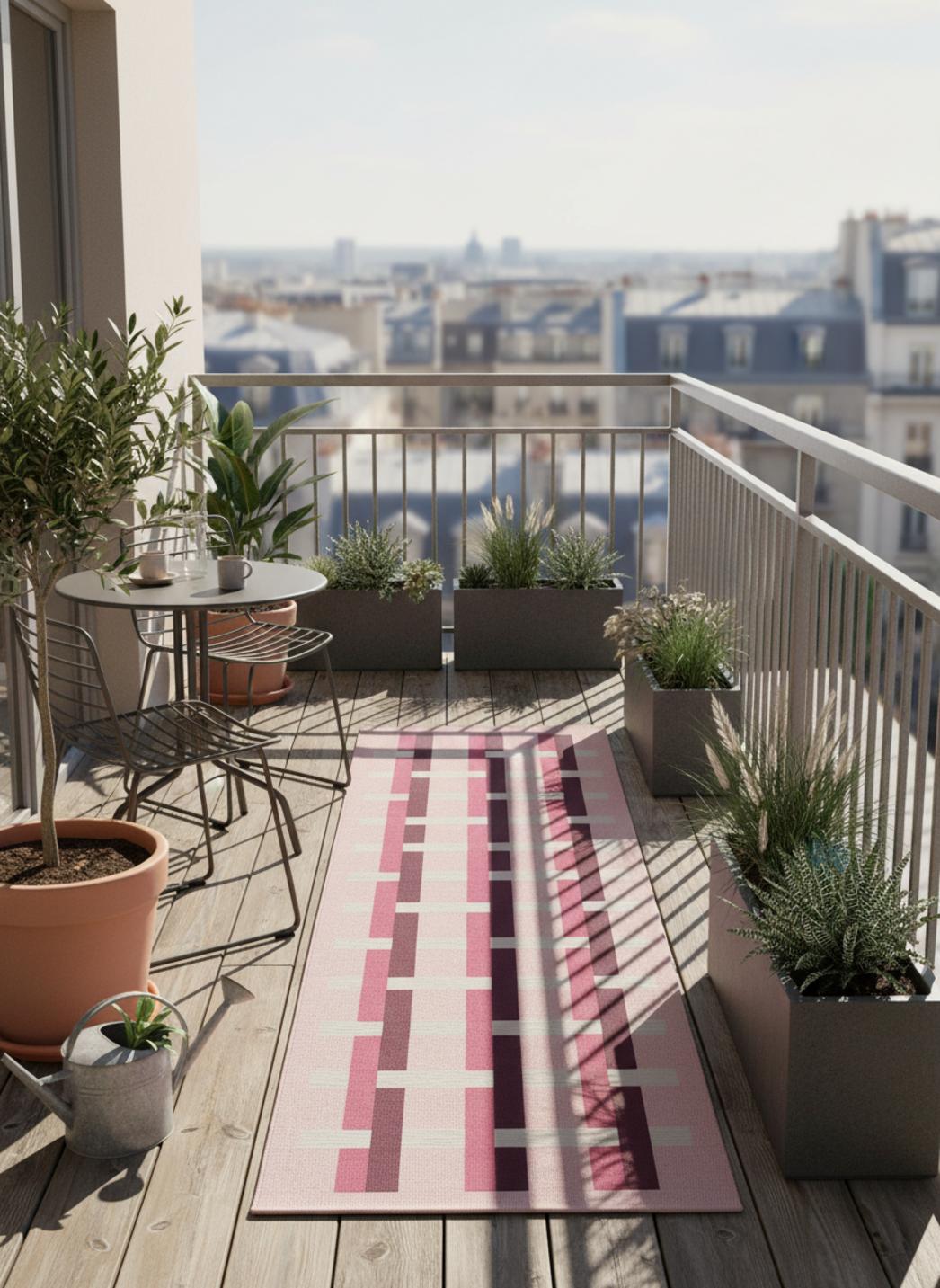 Le long d’un couloir baigné de lumière, le tapis géométrique quadrillé rose et blanc trace un chemin doux et raffiné. Ses lignes régulières guident le regard avec rythme et légèreté, apportant structure et fluidité à la circulation. Le contraste délicat entre le rose poudré et le blanc lumineux insuffle une atmosphère apaisante, entre fraîcheur et tendresse. Chaque pas semble s’accorder à la cadence du motif, comme une respiration visuelle qui équilibre l’espace. Pensé pour sublimer les zones de passage ou les entrées, il trouve aussi sa place sur un balcon étroit ou le long d’une terrasse, où il prolonge la perspective et adoucit le décor. Issu de la collection de tapis d’extérieur, il illustre l’art de mêler graphisme contemporain et harmonie chromatique. La présence de ses carreaux clairs évoque la modernité urbaine tout en conservant la chaleur des ambiances naturelles. On retrouve cette élégance subtile dans la gamme de tapis d’extérieur roses, où la couleur se fait douce, vivante et toujours équilibrée. Dans un format de 80x250 cm, il accompagne le mouvement sans l’interrompre, reliant les pièces ou les zones de vie avec naturel. Un tapis qui redessine l’espace comme une ligne de lumière, invitant à marcher vers la clarté.