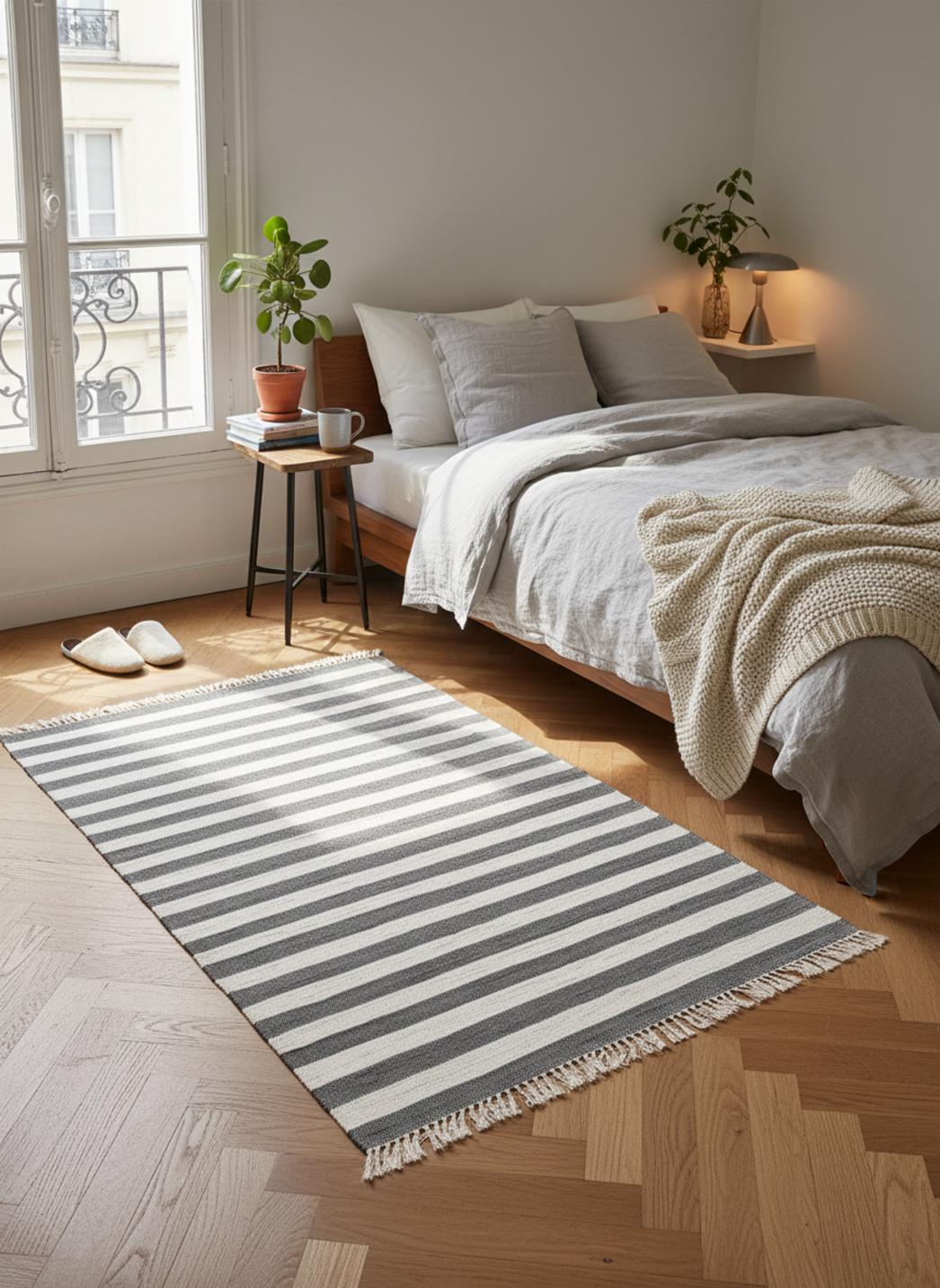 Apprécié pour sa légèreté et son toucher naturel, le coton est une matière saine et respirante. Votre Tapis géométrique rayé à franges gris et blanc en coton 60x100 cm apportera une touche de fraîcheur à votre intérieur tout en restant facile à vivre.