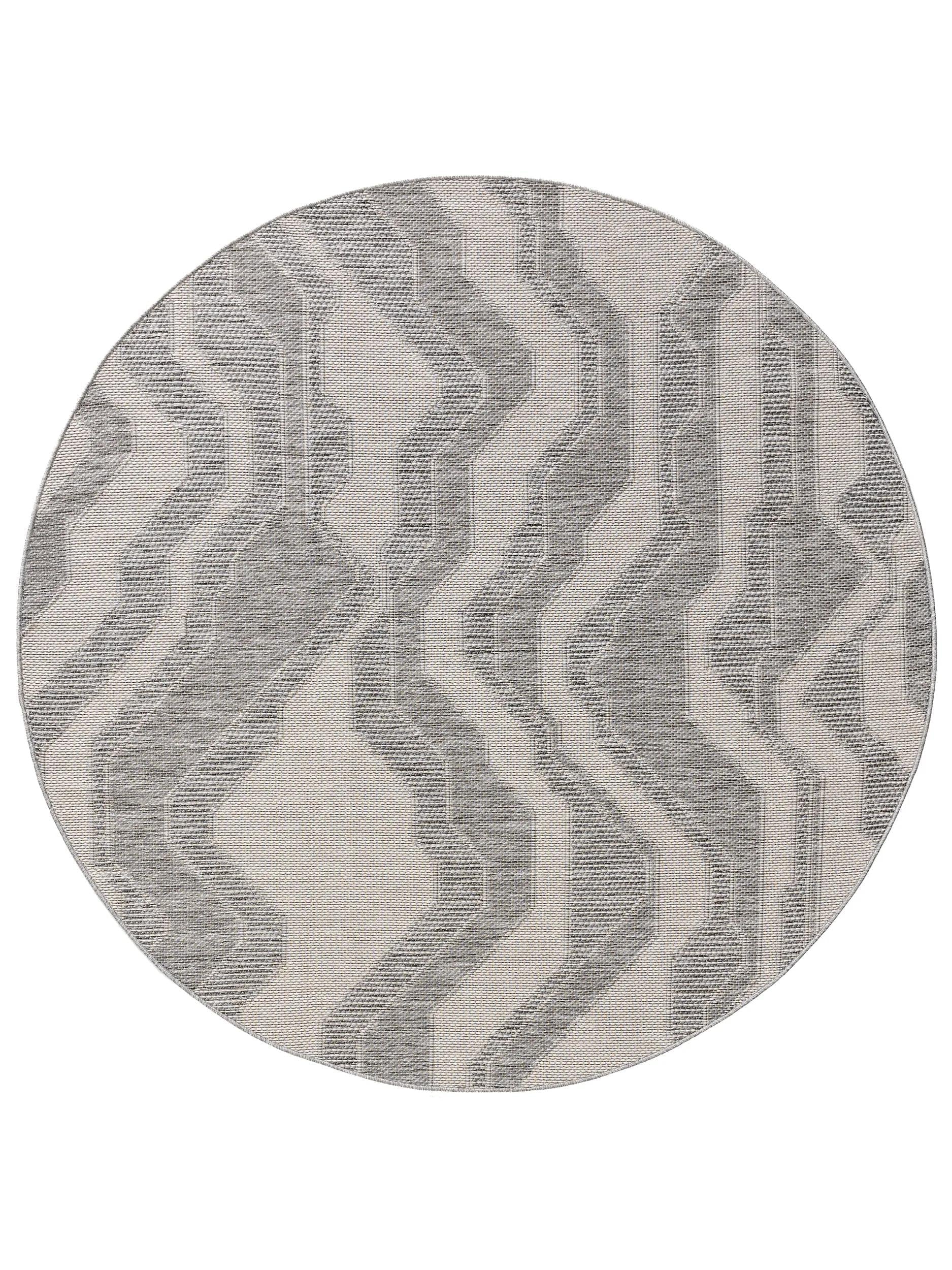 Tapis géométrique rayé rond gris d'intérieur et d'extérieur 160 cm de diamètre