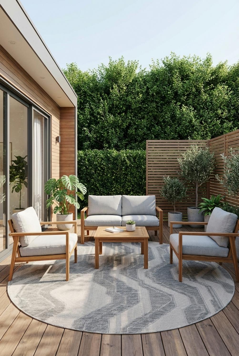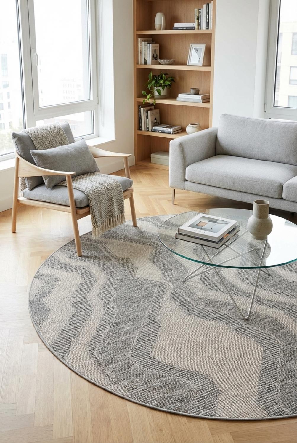 Comme une onde de lumière posée au sol, le tapis géométrique rayé rond gris diffuse une élégance discrète et contemporaine. Ses rayures fines s’organisent en un mouvement circulaire apaisant, créant un effet visuel subtil qui structure l’espace tout en douceur. Le gris, ton neutre et intemporel, reflète la lumière naturelle et s’accorde aisément aux matières brutes comme le bois clair ou la pierre. En 160 cm de diamètre, il adoucit les lignes d’un salon, d’une terrasse ou d’une véranda, reliant intérieur et extérieur dans une continuité fluide. Ce modèle incarne la sobriété raffinée des tapis d’extérieur, où la géométrie devient un langage de lumière et d’équilibre. Son tissage à plat révèle de délicats reflets selon l’éclairage du jour, renforçant la profondeur du motif. On retrouve cette même harmonie contemporaine dans la collection de tapis d’extérieur ronds, idéale pour créer des ambiances apaisées et modernes. Un tapis qui relie le mouvement à la sérénité.