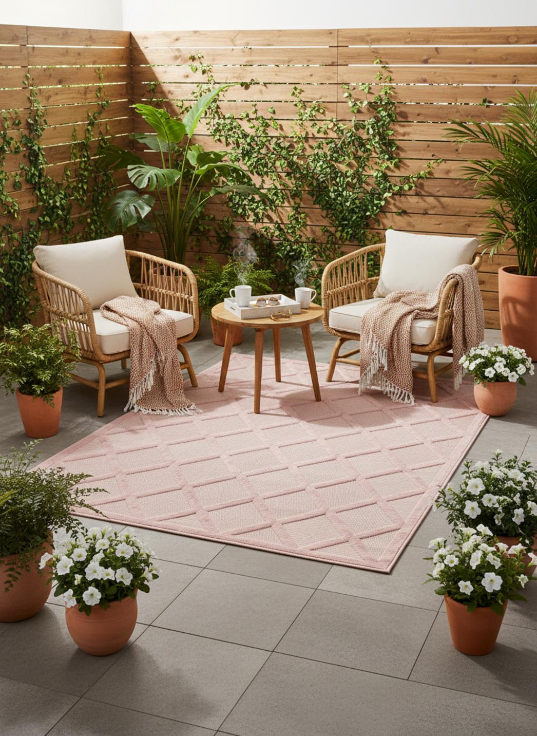 La simplicité devient élégance avec ce tapis géométrique rose, dont les lignes discrètes se fondent dans une teinte lumineuse et apaisante. Sur 80x150 cm, il s’installe avec naturel sur un balcon, une terrasse ou dans un petit coin détente, apportant une touche de douceur contemporaine. Le motif géométrique, finement dessiné, structure l’espace tout en laissant respirer la lumière, tandis que le rose diffuse une chaleur subtile et réconfortante. À la clarté du jour, ses nuances poudrées révèlent des reflets délicats, créant une atmosphère à la fois moderne et sereine. Ce tapis d’intérieur et d’extérieur allie minimalisme et raffinement, transformant les petits espaces ouverts en lieux accueillants et lumineux, où la géométrie se fait douce et la couleur, source de bien-être.